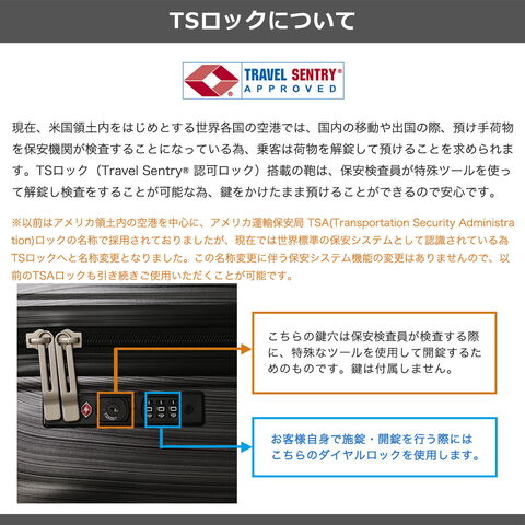 | TSAロック | あり ※TSAロックについて |