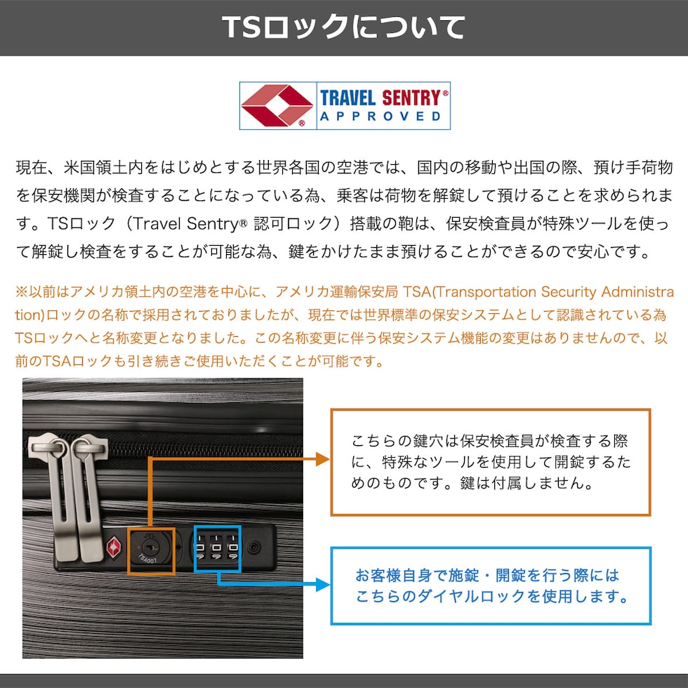 | TSAロック | あり ※TSAロックについて |