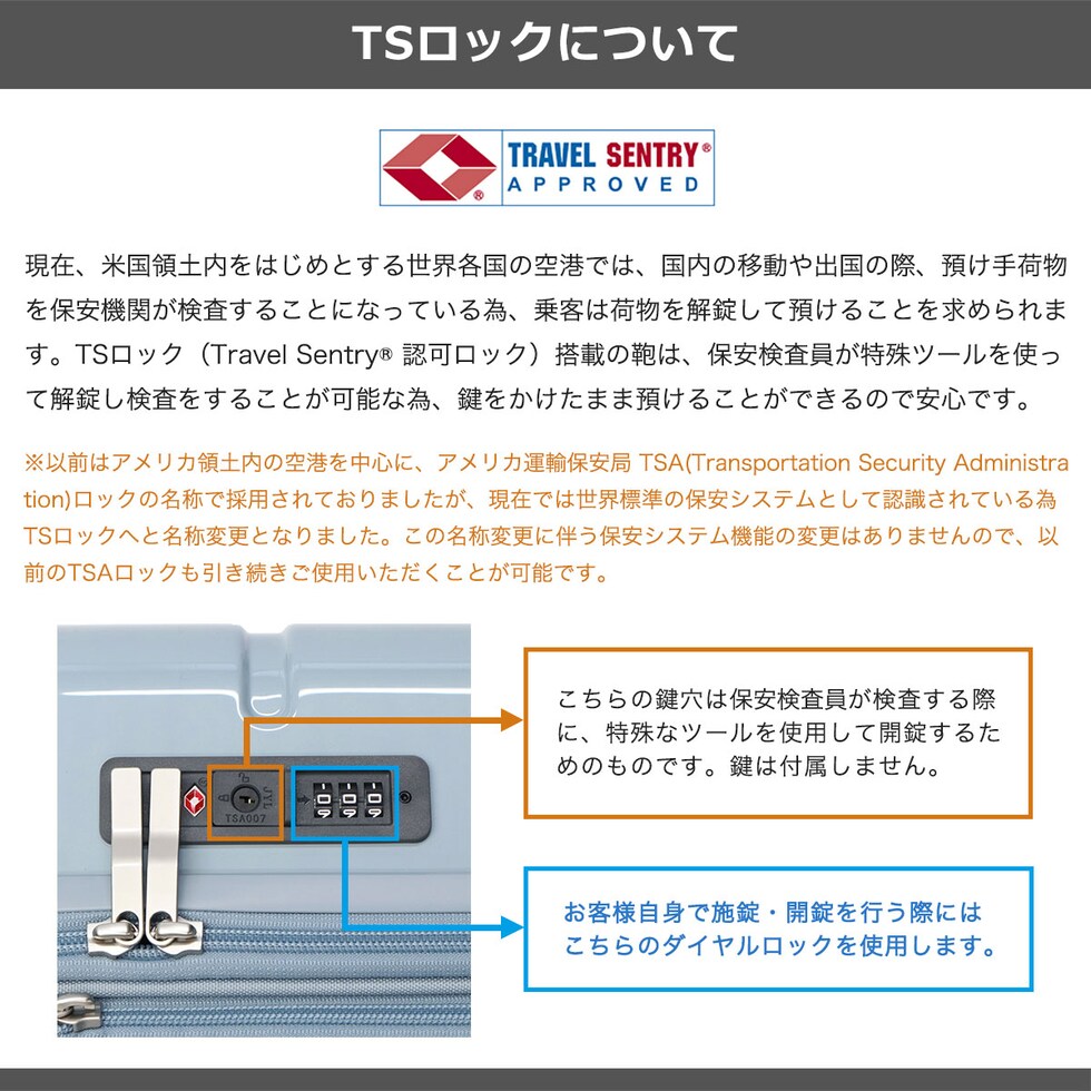 | TSAロック | あり ※TSAロックについて |