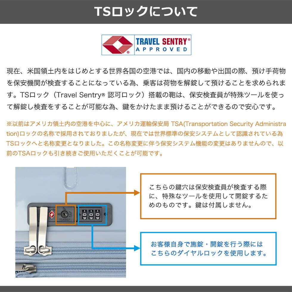| <購入前にご確認ください> ・メーカーの意向により、付属品の収納袋や箱、製品の仕様やデザインは予告なく変更となる場合がございます。 ・下記による返品・交換はお受けすることができませんので、予めご了承ください。 └ 製品の性質上による細かいキズや塗装ムラ、気泡などがある場合。 └ 配送用の段ボールにキズ、汚れ、破損がある場合。 ・エキスパンダブル機能付きの製品は、マチ拡張時の3辺の和が機内持ち込みサイズ、預け入れ無料サイズを超える場合がございます。また、航空会社や飛行機の機種などによって規定が異なりますので、予めご確認の上お求めください。 ※機内持ち込みサイズ目安表はこちら ・水濡れ(雨・汗など)や日焼けにより、色落ち、退色する恐れがございます。商品のお取り扱いには十分にご注意ください。 ・柄の位置やカラーバランスなどは、生地の裁断や製造過程、素材の特性により画像とは異なる場合がございます。商品をお選びすることはできませんので、予めご了承ください。 ・極力実物に近い色味を再現しておりますが、モニター等の条件により画面上と実物では色味が異なって見える場合がございます。 |