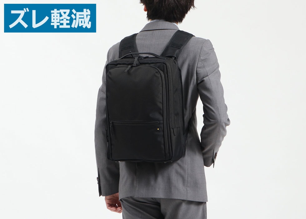 洗濯できるウォッシャブル機能や、モデルごとに異なる機能をリュックストラップに搭載した新機能ビジネスリュックシリーズ『WP パック』。こちらはズレ落ちを軽減する機能をリュックストラップに備えた13L容量のモデルです。快適な使い心地を追求した機能的な設計がビジネスライフをサポートします。