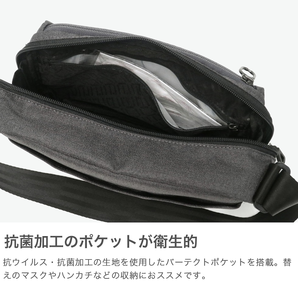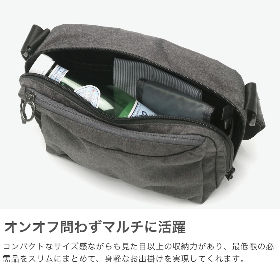 高機能ショルダー シンプルながらも選び抜かれた機能性を持つ「ホバーライト」シリーズのリモデル版、『ホバーライト2』のミニショルダーバッグ。抗菌防臭・抗ウイルス生地を使用した、ジップ開閉のバーテクトポケットをメインルームに搭載しています。落ち着いた雰囲気を演出してくれる外側の生地は、撥水加工が施された優れもの。カジュアルスタイルからビジネスウェアまで、幅広い服装に馴染むアイテムです。 |