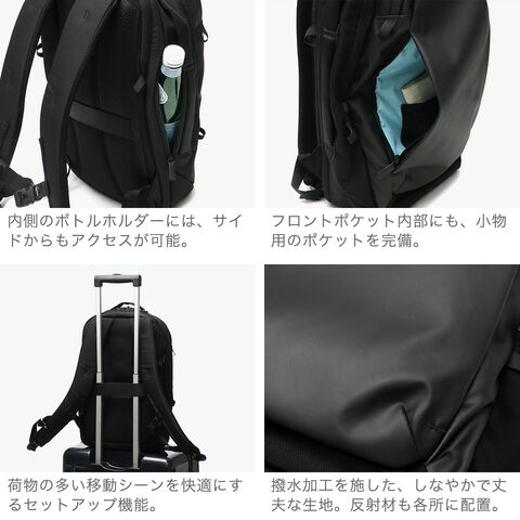 | 仕様 | <外側> ポケット×3 PC収納×1 <内側> ポケット×5 ボトルホルダー×1 キーフック×1 <付属品> チェストストラップ×1 |
