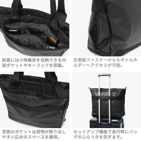 | 仕様 | <外側> ポケット×4 <内側> ポケット×8 PC収納×1 ボトルホルダー×1 ペンホルダー×2 キーフック×1 |