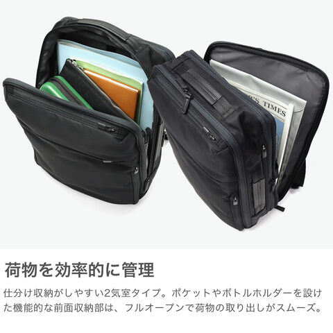| 仕様 | <外側> ポケット×4 <内側> ポケット×4 PC収納×1 ボトルホルダー×1 ペンホルダー×2 |