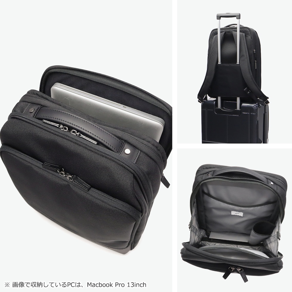 ポケット×1 PC収納×1 <内側> ポケット×4 ボトルホルダー×1 ペンホルダー×2 キーフック×1 |