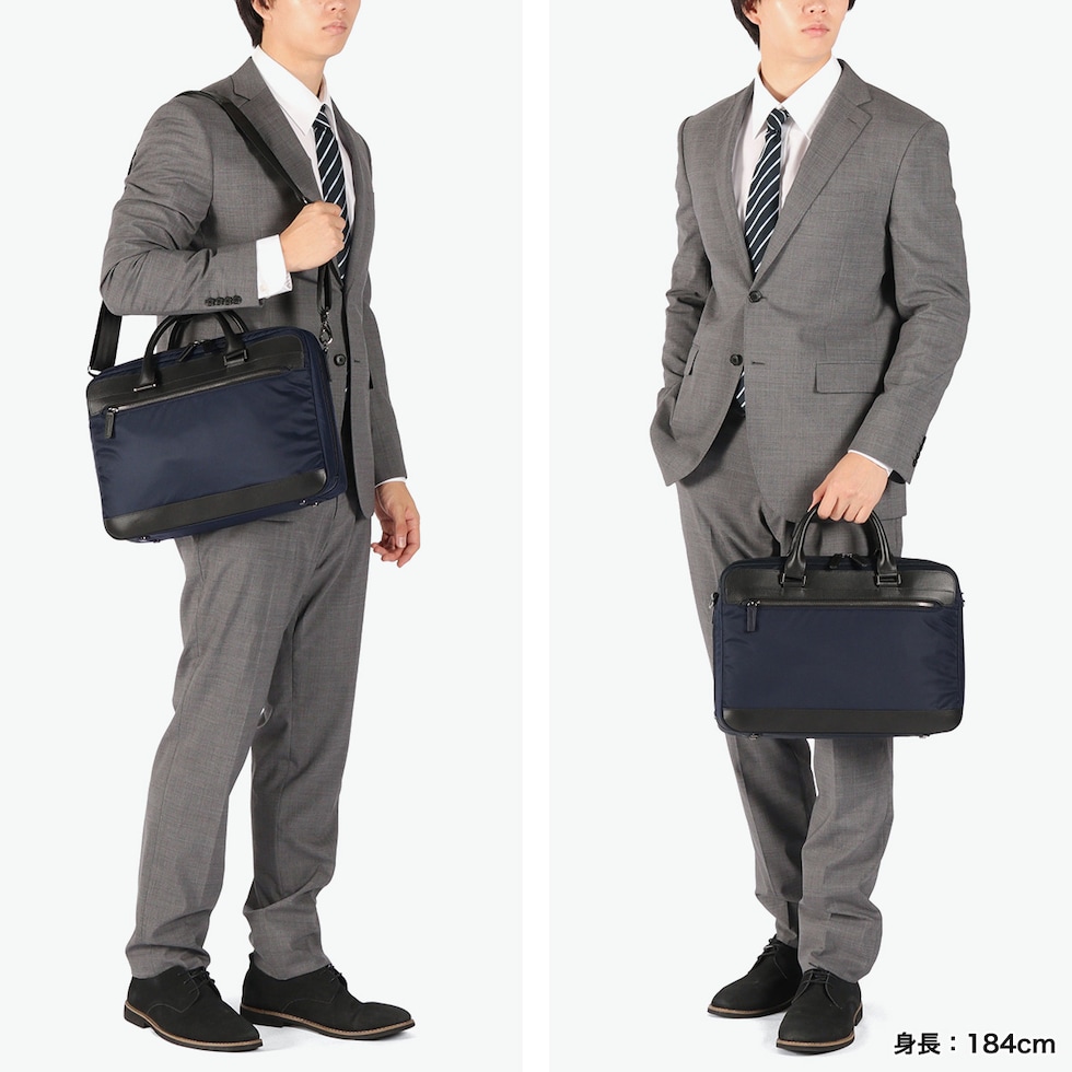 | 素材が語る高級感 洗練されたブリーフ 洗練されたデザインと使いやすい機能性を両立させた、『ヴァシリアス』シリーズのビジネスバッグ。セットアップ機能付きで、A4サイズや13.3インチのPCもすっきり収納でき、通勤から出張までスマートに活躍します。スーツスタイルに自然に馴染み、どんな場面でも落ち着いた印象を与えます。上質な素材使いと細部へのこだわりが、ビジネスシーンでの印象をワンランク上へと引き上げます。 |
