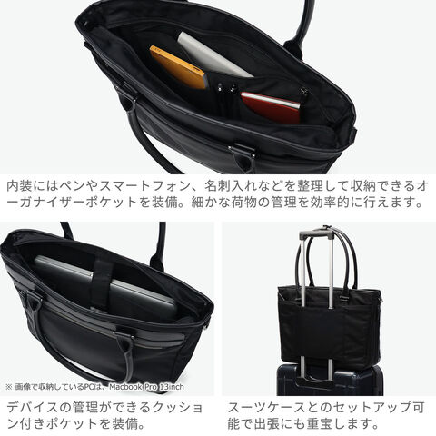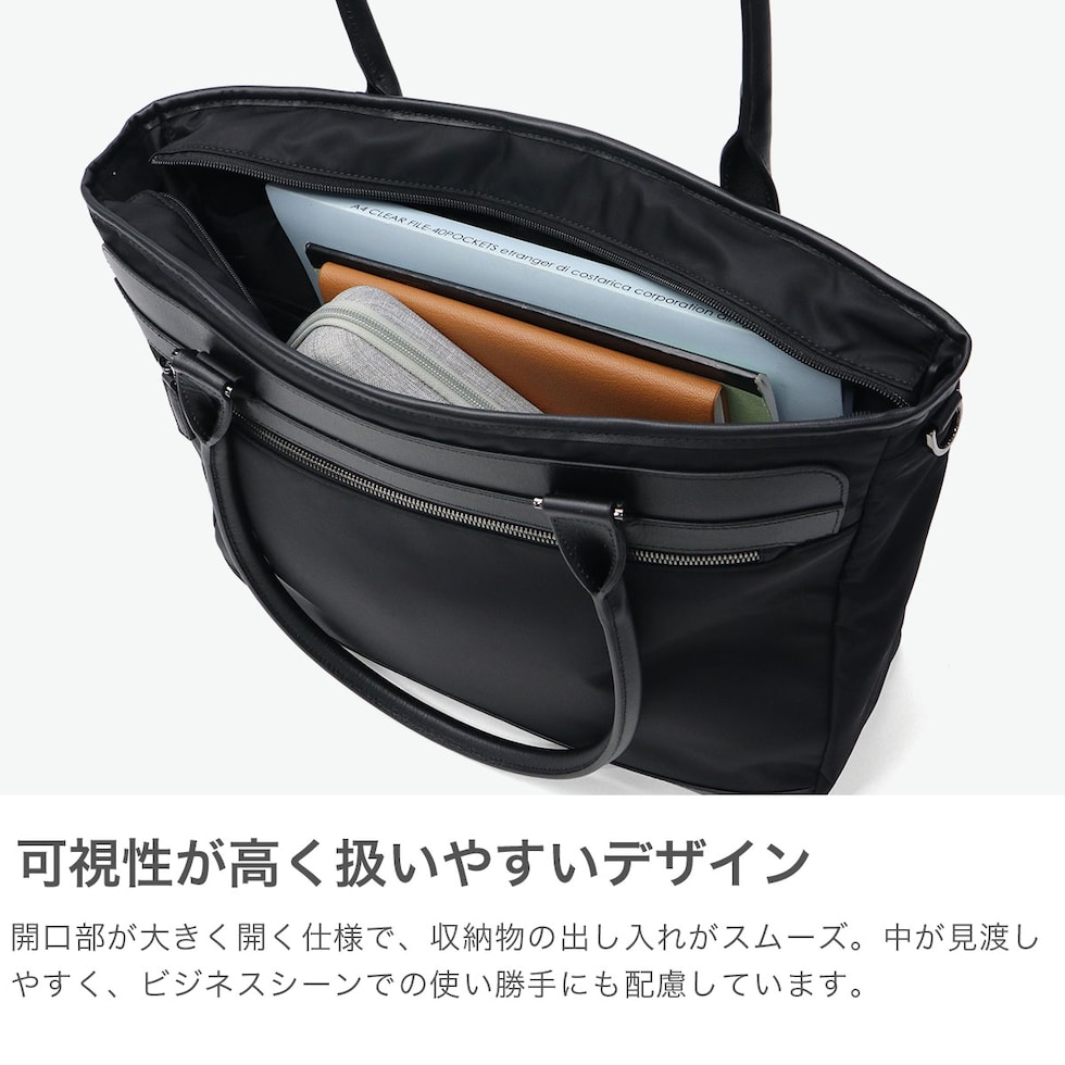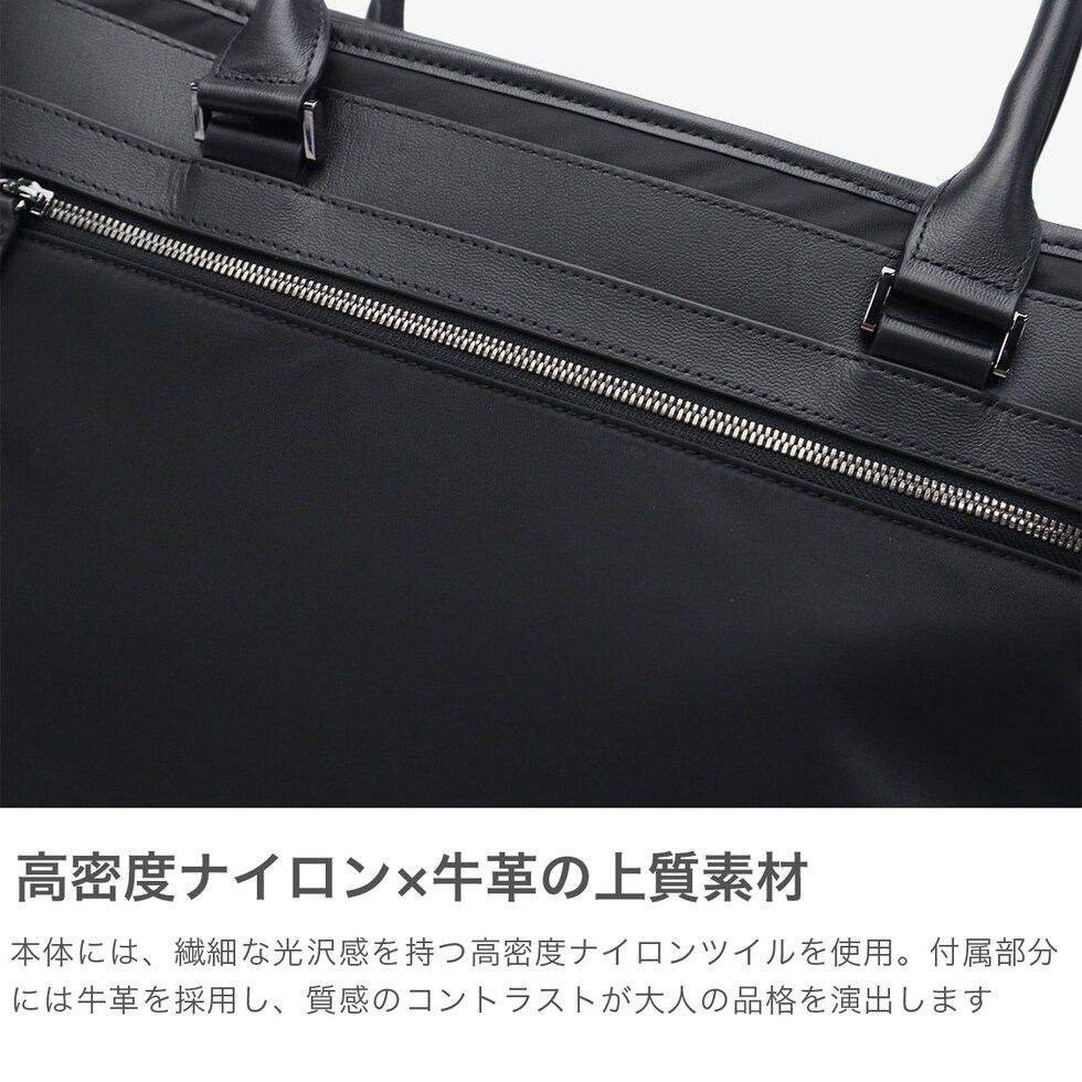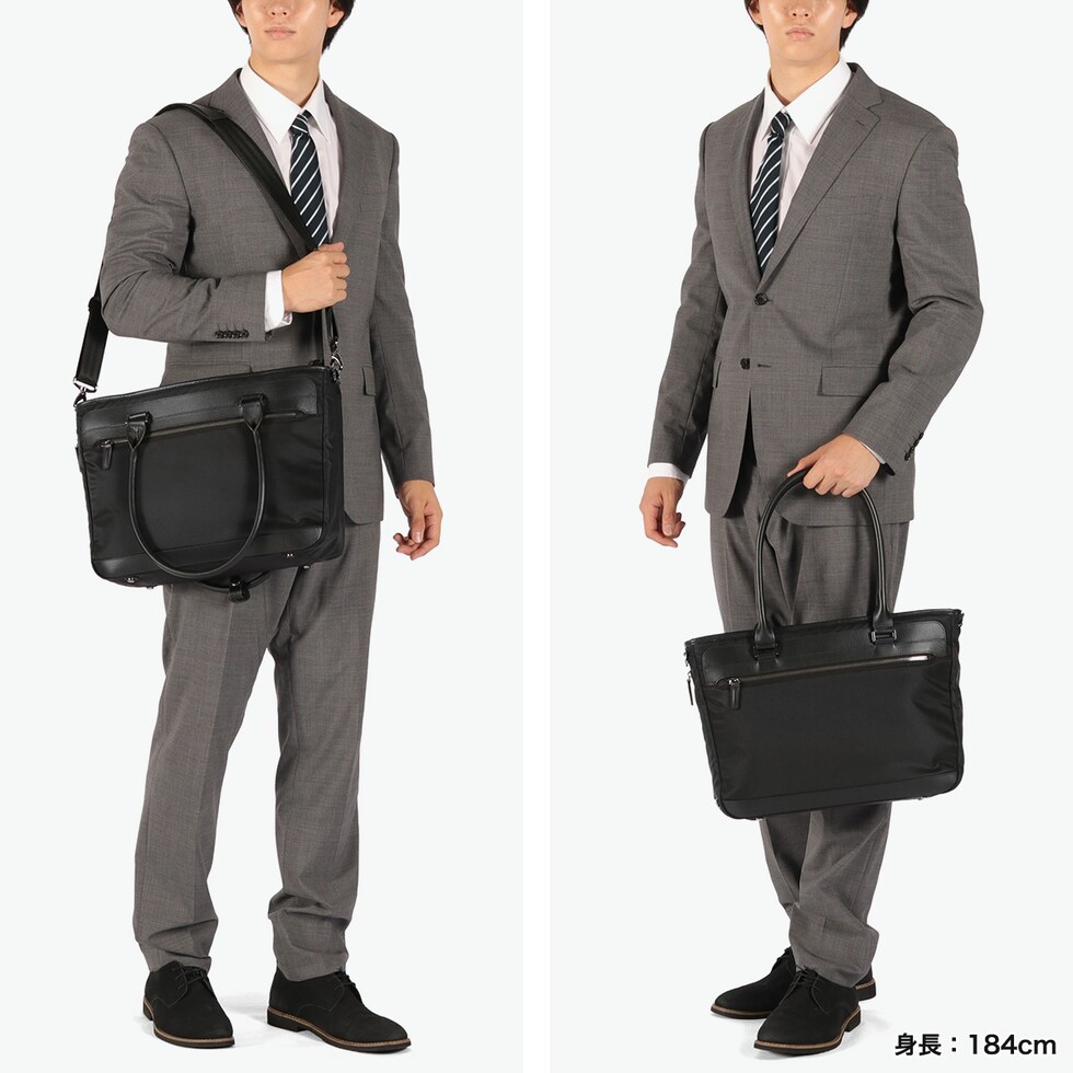 備えたビジネストート 洗練されたデザインと機能性を両立させた、『ヴァシリアス』シリーズのビジネスバッグ。上質な素材使いと細部へのこだわりが、スーツスタイルに自然に馴染み、落ち着いた印象を演出します。通勤から出張まで幅広く対応し、毎日のビジネスシーンを快適かつスマートにサポートします。 |