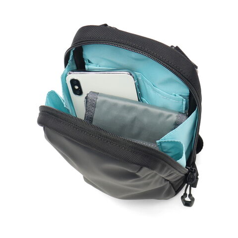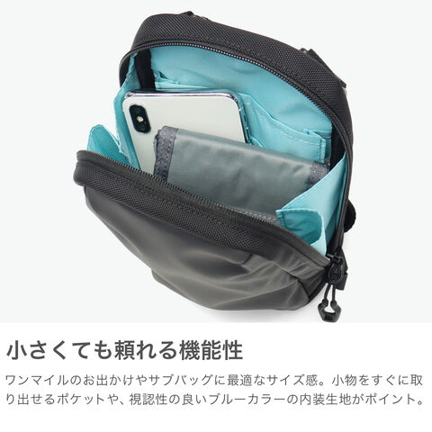 頼れるアイテム カジュアルなデザインに機能性を加えたバッグシリーズ『ラグレンティスクロス』の縦型ショルダーバッグ。耐摩耗性・撥水性に優れた丈夫な生地を使用しているため、雨の日も安心して使えます。小物収納にぴったりな外側ポケットで、いつでもスマートな出し入れが可能に。内装は明るいブルーの生地になっており、荷物を見つけやすく便利です。コンパクトながらも機能が充実し、オンオフ問わず活躍します。 |