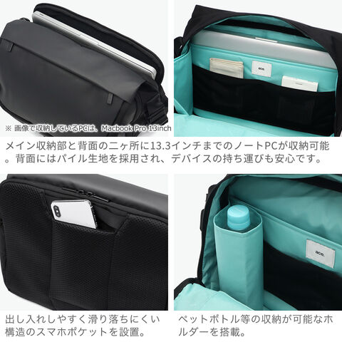 | 仕様 | <外側> ポケット×4 PC収納×1 <内側> ポケット×9 PC収納×1 ボトルホルダー×1 |