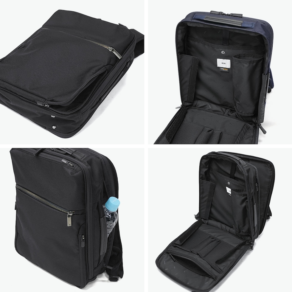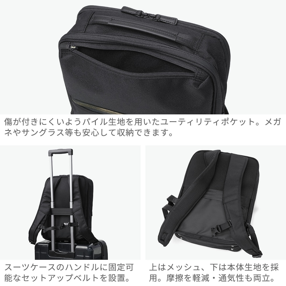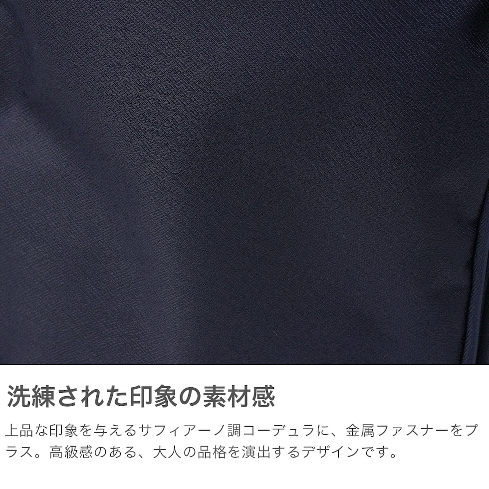 ベストセラーの『ガジェタブル』シリーズから、サフィアーノ調のコーデュラ素材を使ったビジネスリュックが登場。 13.3インチ程度のノートPCが収納可能なPC収納部や、抗ウイルス・抗菌加工の生地を使用したポケット使いなど、ビジネスシーンを快適に彩る工夫が満載。上品な印象を与える特徴のある本体素材と、フロントポケットの金属ファスナーで機能性だけでなくファッション性を高めたデザインに仕上げています。