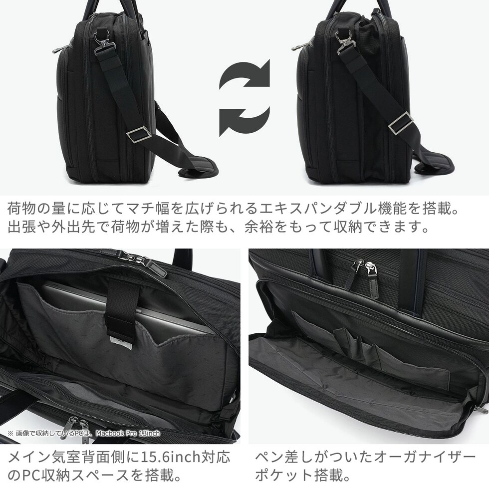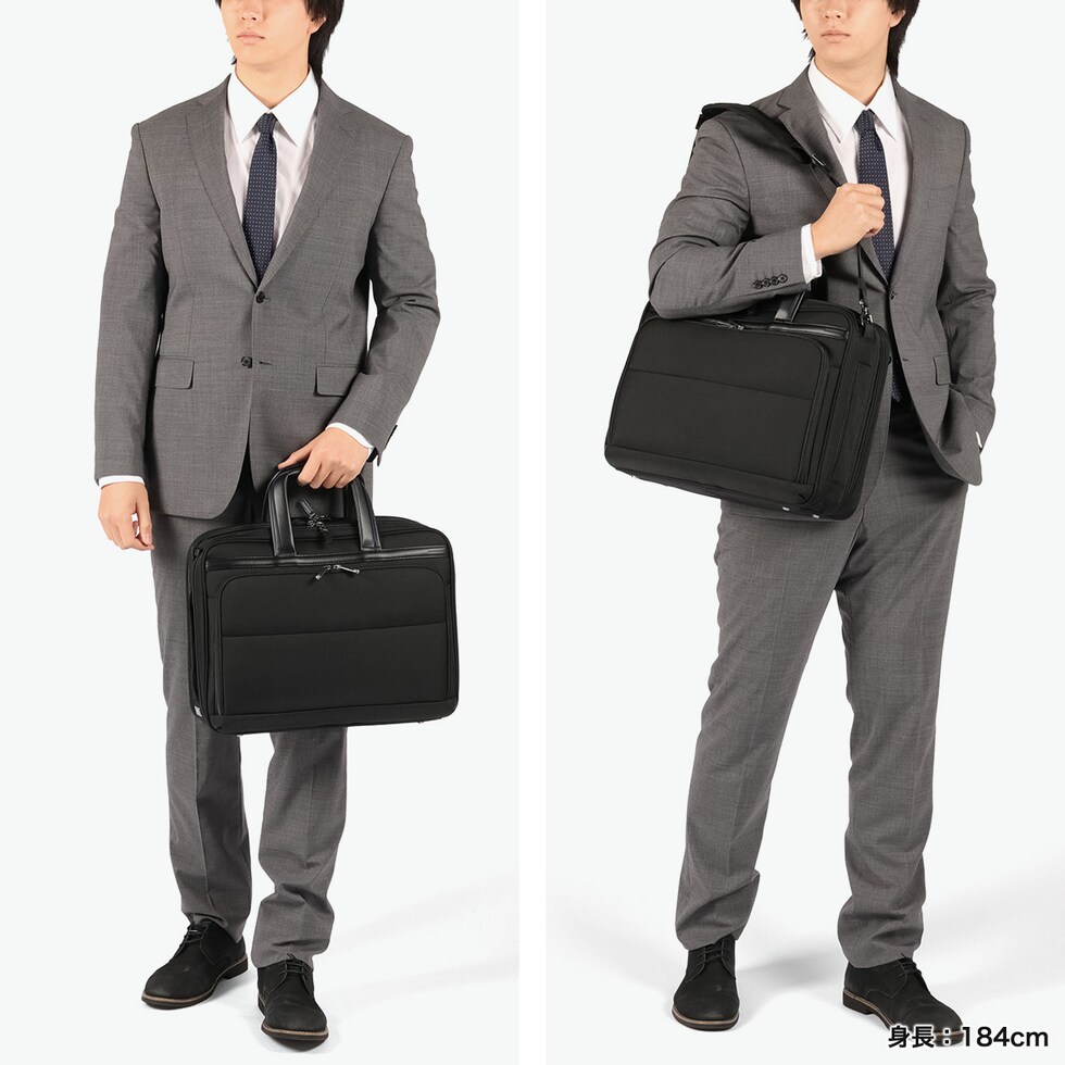 | 整理・拡張・機動 すべてを一つに 無駄を削ぎ落としたミニマルな佇まいに、ビジネスに必要な機能をスマートに凝縮した『デヴェル』シリーズのビジネスバッグ。書類やPCを効率よく整理できる2層式構造に、21Lから27Lへ容量アップできる機能を搭載。さらに、キャリーオン対応で出張時の移動もスムーズ。クッションパッド付きショルダーベルトが肩への負担を軽減し、長時間の移動でも快適さを保ちます。通勤から出張まで対応する機能美あふれる一品です。 |