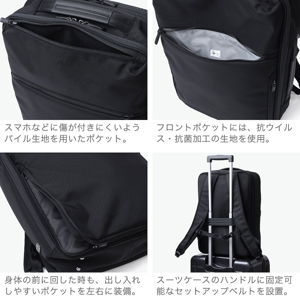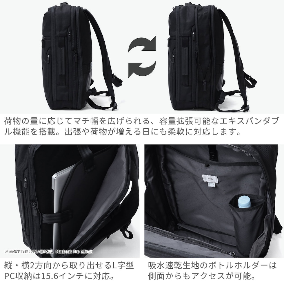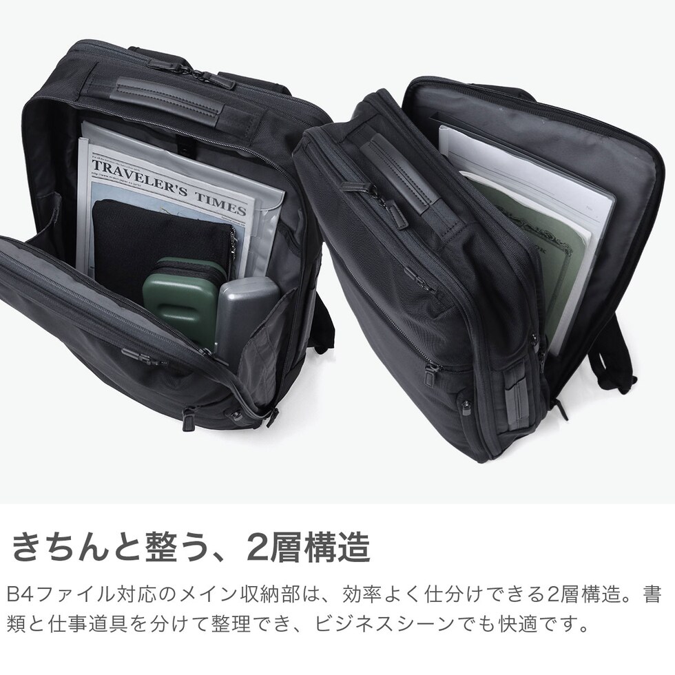 拡張ビジネスリュック ベストセラーのガジェタブルCBシリーズを、ユーザーの意見を取り入れてブラッシュアップした『GADGETABLE CB2』。こちらは、19/23Lに拡張できるB4サイズ対応のビジネスリュックです。2層式となっており、15.6インチまでのPCを収納できるスペースを完備。出張などに便利なキャリーオン機能などビジネスシーンをサポートしてくれる機能的な仕上がりとなっています。 |