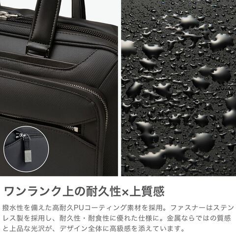 | 仕様 | <外側> ポケット×3 <内側> ポケット×8 PC収納×1 ボトルホルダー×1 ペンホルダー×2 キーフック×1 <付属品> ショルダーストラップ×1 |