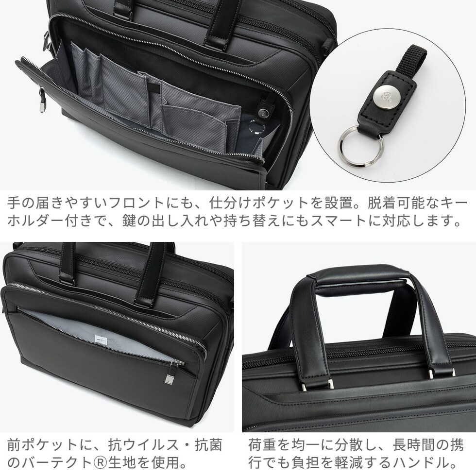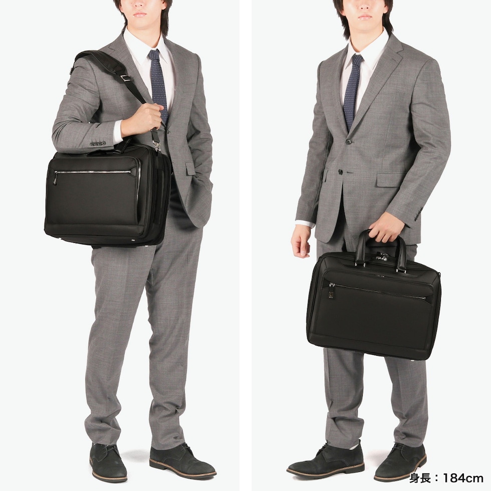 | 仕様 | <外側> ポケット×3 <内側> ポケット×8 PC収納×1 ボトルホルダー×1 ペンホルダー×2 キーフック×1 <付属品> ショルダーストラップ×1 |