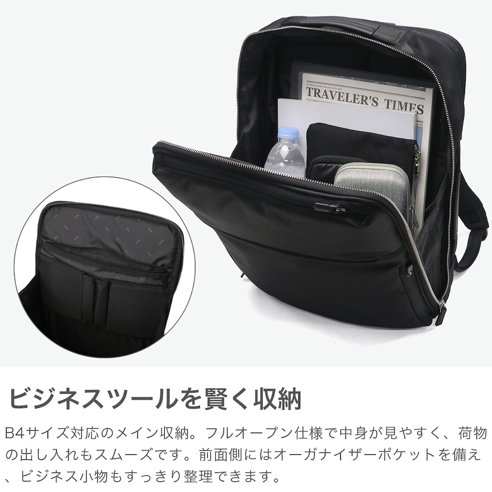 | 頼れる拡張力で スマートな通勤を叶える ace.ブランド10周年を記念した、『ガジェタブル R』シリーズの特別限定モデル。荷物の量に応じて容量を拡張できるビジネスリュックです。スリムなフォルムながら必要なツールをしっかり収納可能。B4対応の2層構造に、15.6インチPCやタブレットが収まるクッションポケットを装備しました。撥水ナイロン素材で急な雨にも対応し、キャリーオン機能も備え通勤や出張を快適にサポートします。機能性と耐久性を備えた、特別仕様の限定モデルです。 |