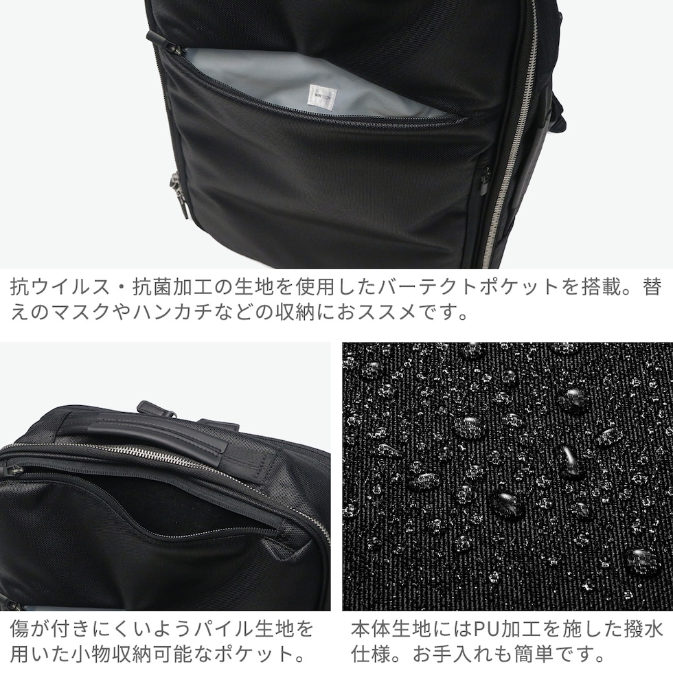| 仕様 | <外側> ポケット×4 <内側> ポケット×6 PC収納×1 ボトルホルダー×1 ペンホルダー×2 |