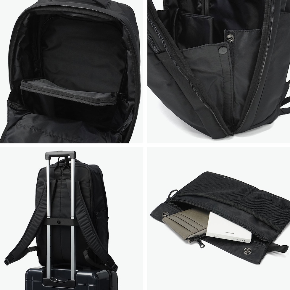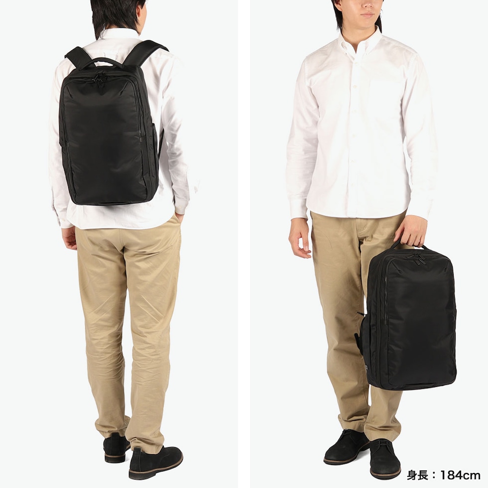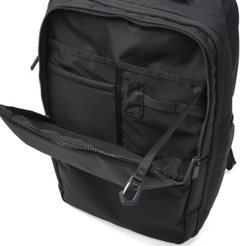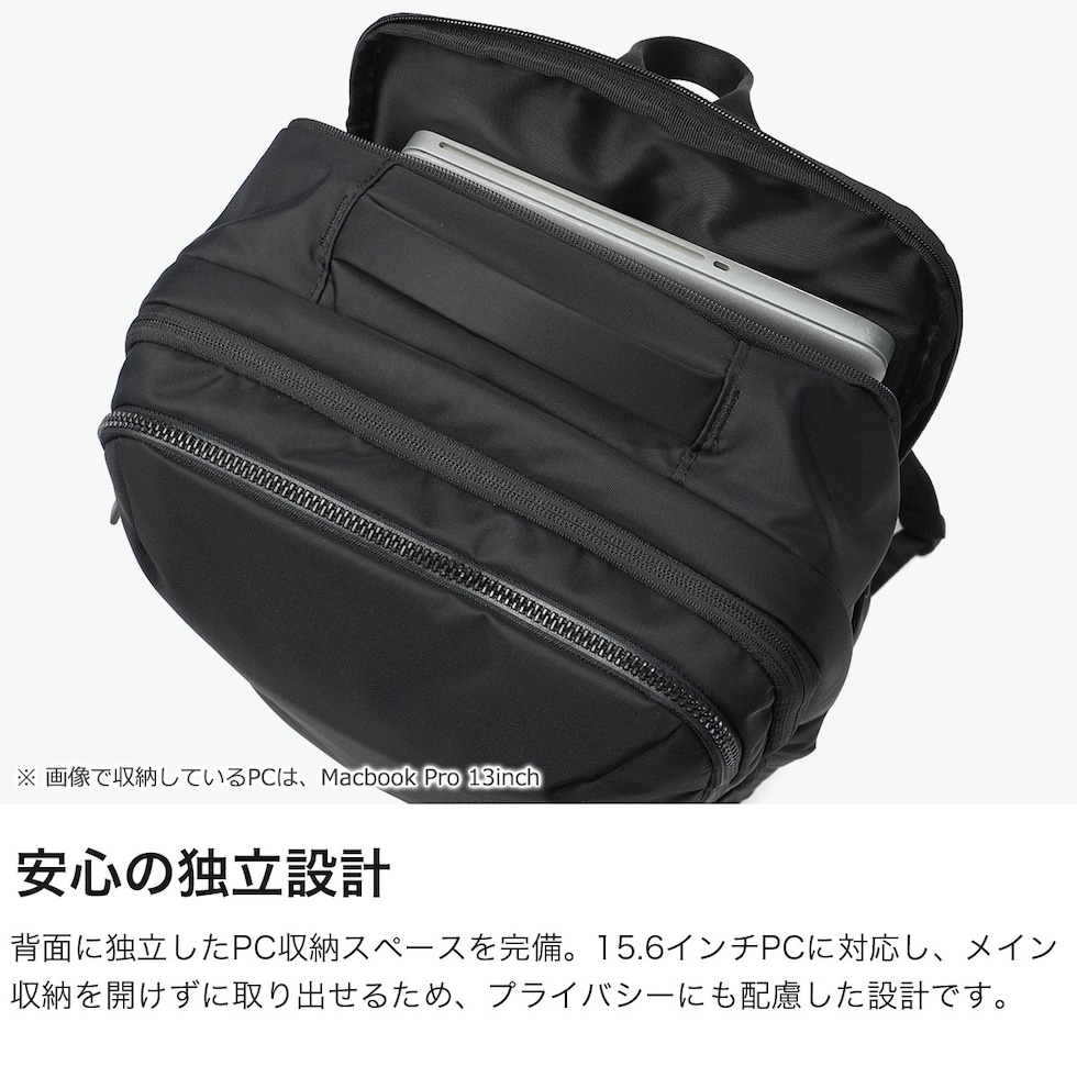 | 収納に困らない柔軟性に 毎日が軽やかに変化する 性別や年齢に左右されない、上品でスマートなビジネススタイルを提案する『ネフィル』シリーズのビジネスリュック。A4・B4対応の2層設計に、15.6インチPC対応の独立収納を外側に配置し、拡張機能で容量調整が可能です。豊富なポケット構造に加え、内側のポケットは取り外してポーチとしても使用可能です。衣類収納スペースも備え高い収納力と整理力を実現。吸水速乾素材の収納やボトルホルダー、セットアップ機能も備え、快適な背負い心地を追求したハーネスを採用し、ビジネスにもカジュアルにも馴染むシンプルデザインです。 |