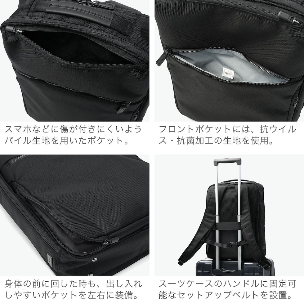 | 備考欄 | <商品のモデルチェンジについて> 【2026年2月~】 ・容量の変更 ・PC収納可能サイズの変更 ・本体の素材変更 ・内装生地の変更 ・ファスナープルの変更 ・ペンホルダーの位置変更 ・リュックストラップの仕様変更 ・リュックストラップを収納不可に変更 ・チェストストラップの仕様変更 ・外側ポケットの追加 ・外側ロゴパーツの変更 |