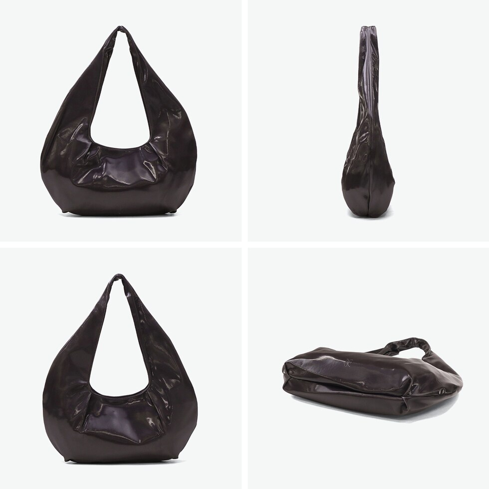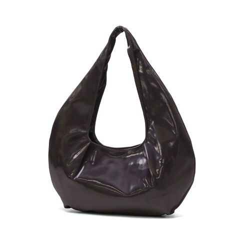 軽さがポイントのトート ほのかな光沢感とモダンなシルエットが魅力的なショルダーバッグです。手持ちでも肩掛けでも可愛らしく持てるハーフムーン型で、女性らしい雰囲気に。デザインポイントにもなっているギャザーがあることで、バッグ内部にゆとりを生み出し、収納力をアップさせています。 |