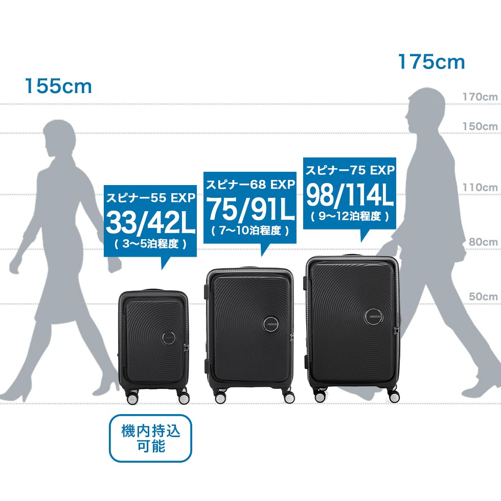 【正規品3年保証】 アメリカンツーリスター スーツケース Mサイズ AMERICAN TOURISTER キュリオ キャリーケース 7泊 8泊 9泊 長期 75L 91L 拡張 ブックオープン スピナー68 EXP ブックオープニング