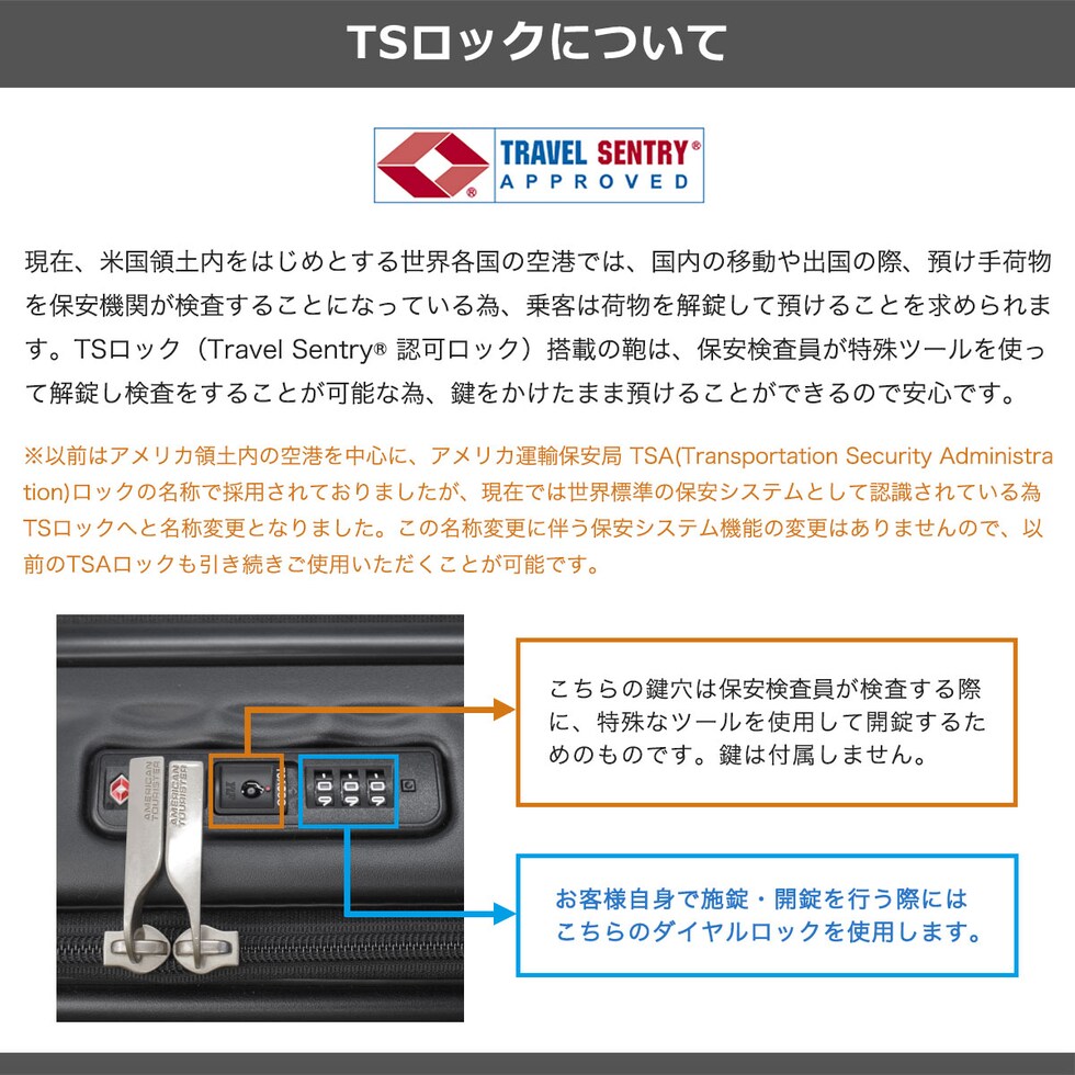 | TSAロック | あり ※TSAロックについて |