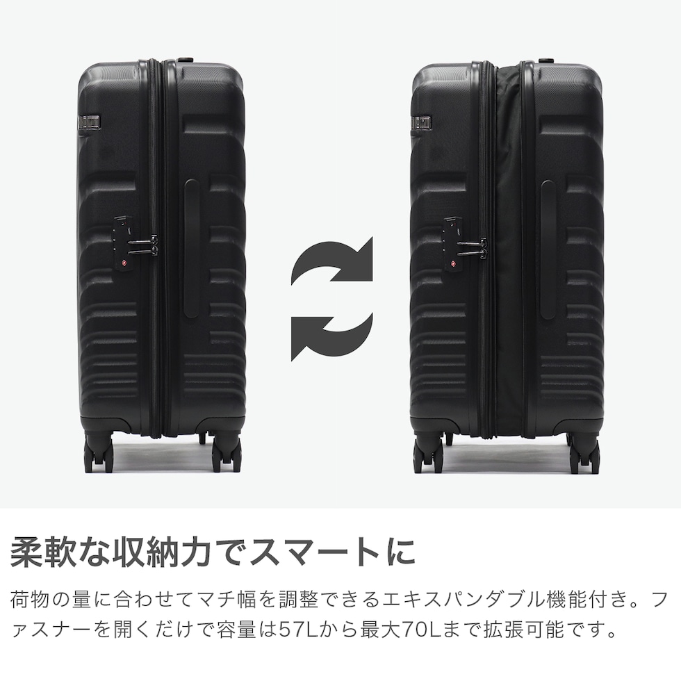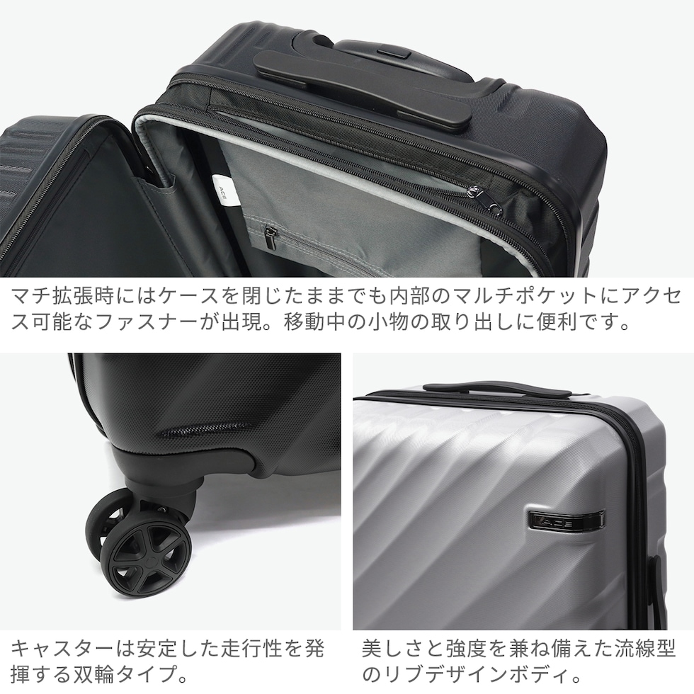 エース スーツケース ACE 拡張 キャリーケース 旅行 軽量 4輪 TSロック TSAロック ビジネス 出張 5~7泊 ハードケース エキスパンダブル ファスナータイプ 57L 70L オーバル2 05912