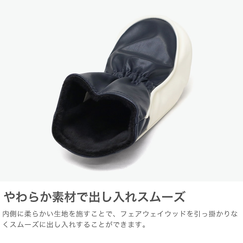 ロゴ刺繍がアクセント ロゴの立体刺繍が高級感を感じさせるフェアウェイ用ヘッドカバー。しなやかで柔らかい生地を採用したことにより、出し入れがスムーズに行えます。内部はクッション性のあるつくりで、クラブヘッドをしっかり保護。ダイヤル式の番手タグ付きで、クラブの管理もスムーズに行えるのも嬉しいポイントです。 |