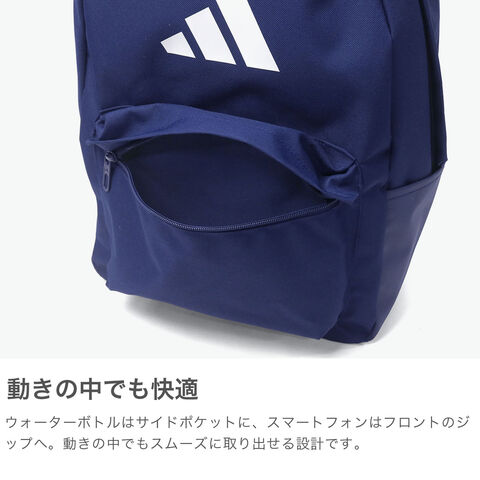クラシックな3本線 クラシックな3本線が映えるバックパックが登場!トレーニングからデイリーユースまで、シーンを選ばず活躍するユニセックスなデザインが魅力です。リサイクル素材を部分的に採用し、スタイルに妥協することなく持続可能なデザインを提供。必需品をすっきり収納できる実用性を備え、普段の外出からジムへの移動まで快適にサポートします。どんな装いにも馴染むベーシックなルックスで、日々の生活に寄り添う頼もしいアイテムです。 |