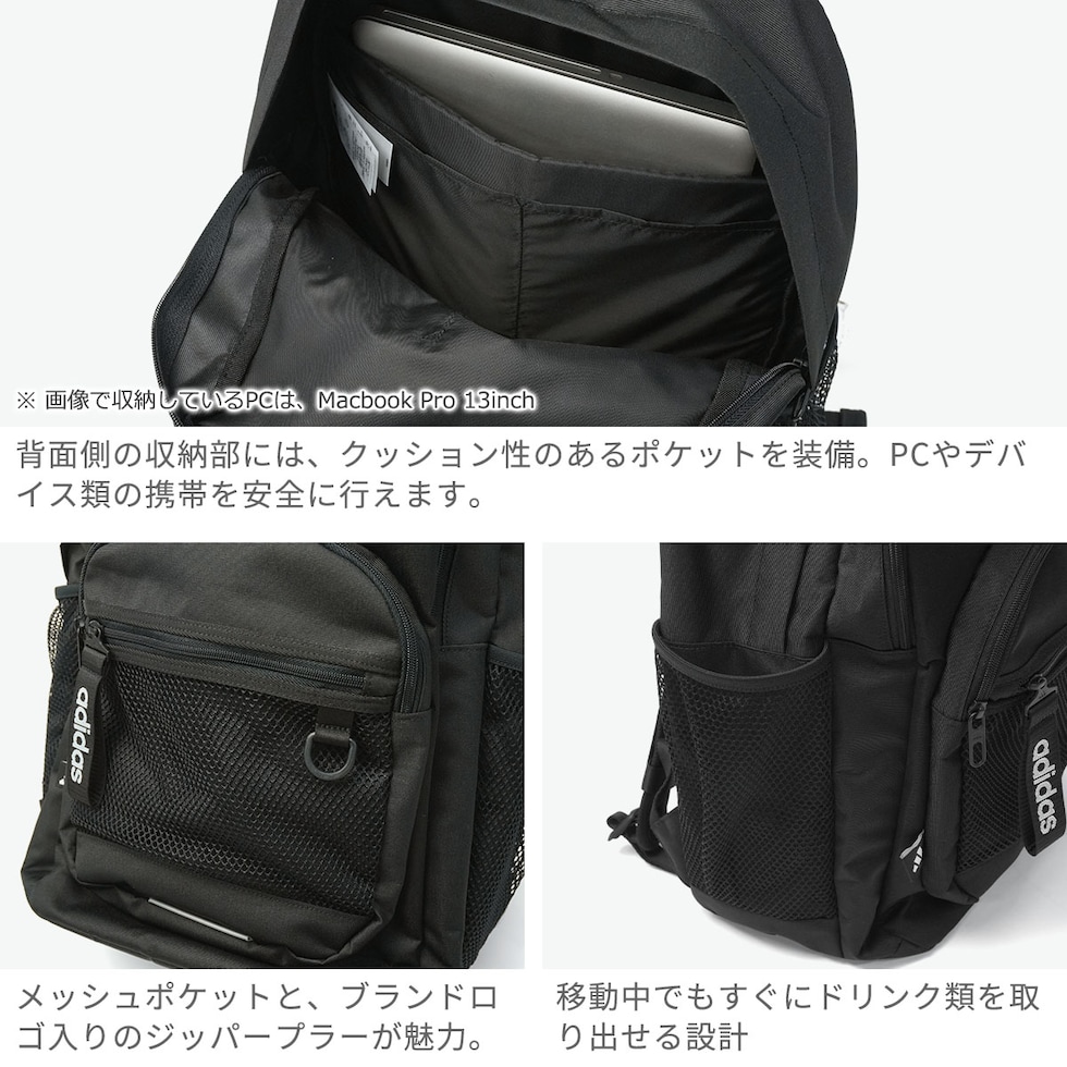 アディダス リュック メンズ レディース 中学生 高校生 大容量 adidas ブランド カジュアル 通学 部活 スポーティ バックパック スクールバッグ PC収納 A4 B4 32L 15inch エッセンシャルズ BTS MLY10のレビュー