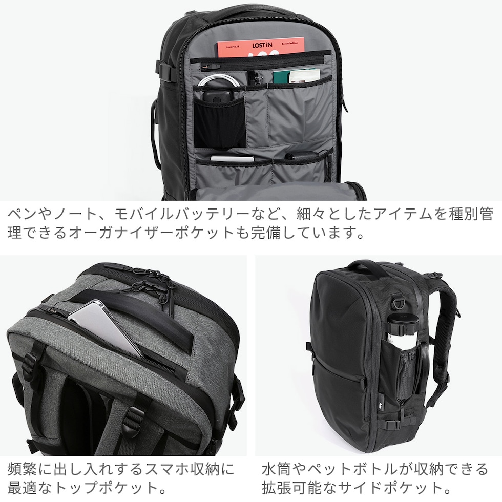 エアー リュック メンズ レディース 大容量 Aer Travel Pack 3 カジュアル おしゃれ 通勤 通学 ビジネス 出張 旅行 トラベル キャリーオン ナイロン かっこいい ブランド バックパック A3 B4 2層 35L PC収納 16inch