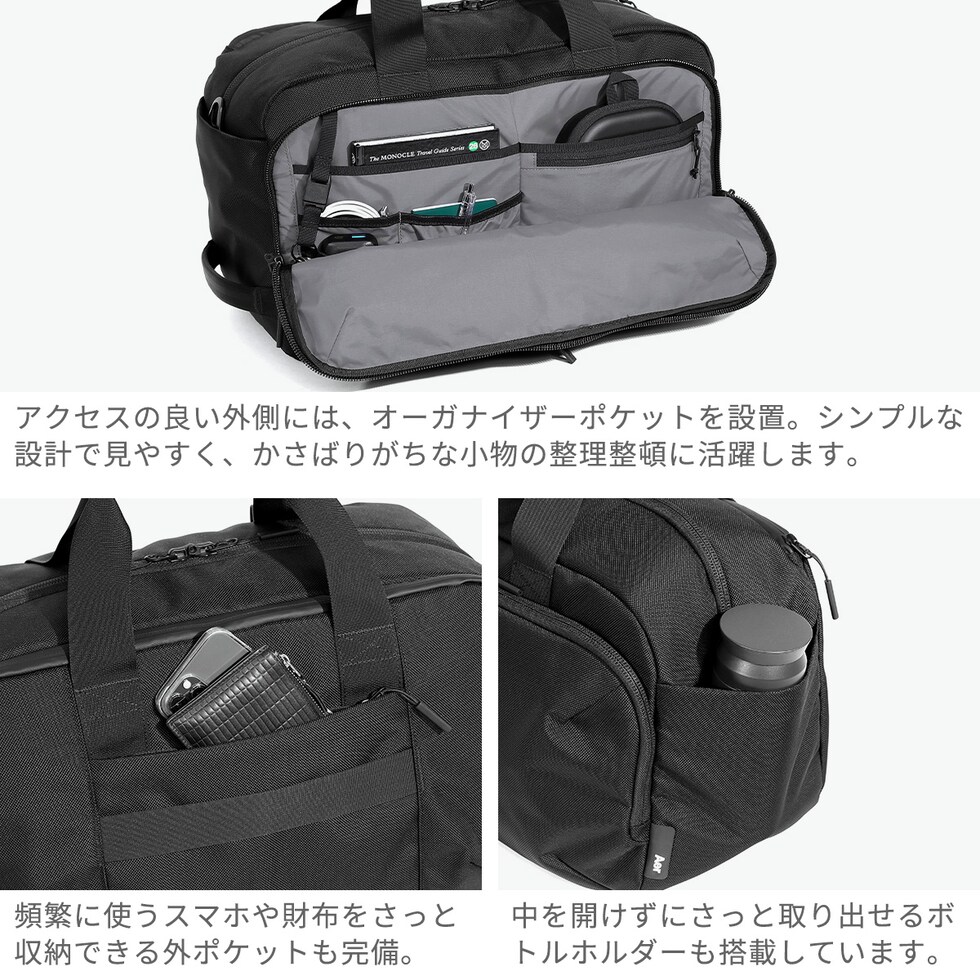 高機能ボストン 「Travel Weekender」は、収納力が非常に高い、機内持ち込み可能なボストンバッグです。大きく開くメインコンペ―トメントと複数の内ポケットにより、旅先でもスムーズな整理整頓が可能。バックパックやスーツケースと組み合わせて使用することで、より快適なトラベルスタイルを実現します。 |