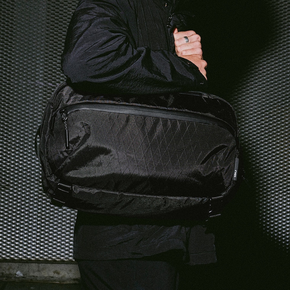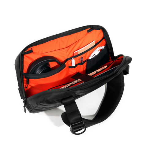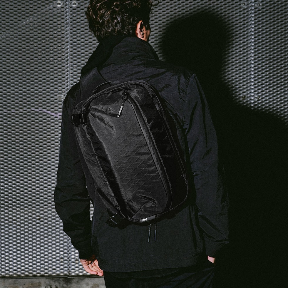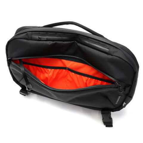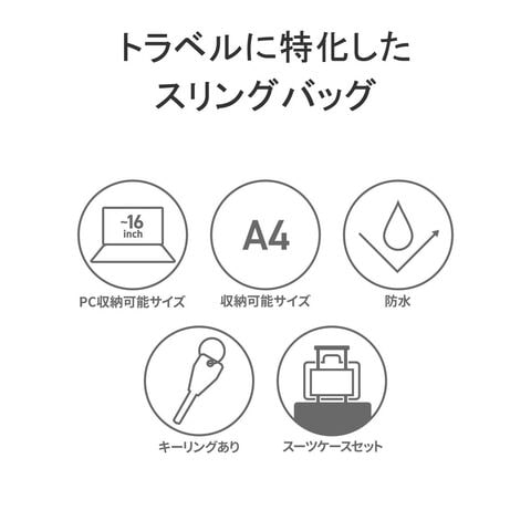 トラベルに特化した スリングバッグ スマートな旅を実現する「Travel Collection」のPC収納付きボディバッグ。素材は、軽量で防水性に優れたDimension-Polyant社のVX-42 X-Pacを使用しています。目的に応じて多様な持ち方が可能なスリングストラップを装備。小物を管理しやすい豊富なポケットが魅力で、旅行に最適なアイテムです。 |