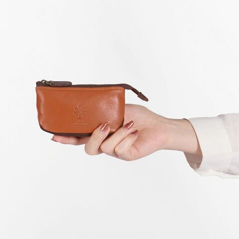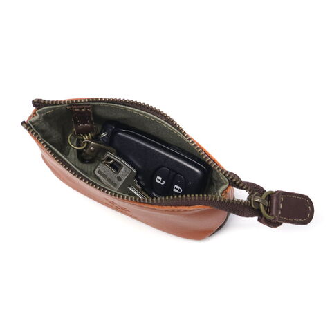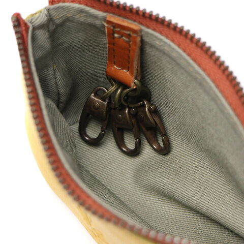 小物入れのような ポーチ型キーケース 洗練された“絹織物の街リヨン”から命名された「LYON」シリーズのキーケースです。メインに使用されているイタリア製牛革は、シリーズ名の通り“絹”の柔らかさにも似た優しい感触と穏やかな光沢感が特徴です。コロンと丸いフォルムと、ブランドらしい2色のカラーコンビネーションが可愛らしいアイテムです。 |