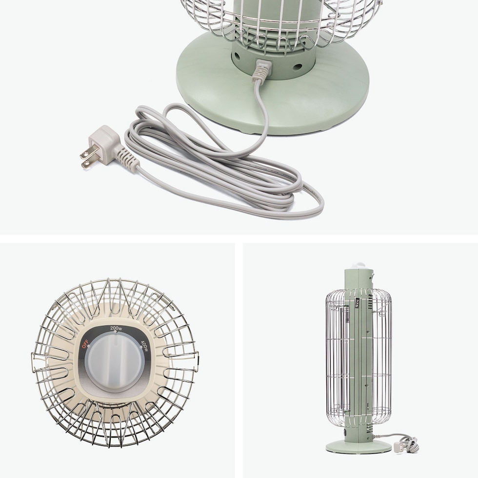 | 仕様 | <電源> 電源:AC100V(50-60Hz) 定格消費電力:400W <パワー切替> 400W / 200W <発熱体> グラファイトヒータ <コードの長さ> 2.3m <転倒オフスイッチ> ボール式 <その他安全装置> 温度過昇防止装置、大型ガード |