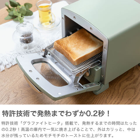 コンパクトなトースター 軽量でコンパクトなサイズの1枚焼きトースター。素早い立ち上がりと高い庫内温度で一気に焼き上げ、外はカリッと、中はモチッとしたトーストに仕上がります。限られたキッチンのスペースでも置きやすいサイズ感と、オシャレなデザインが魅力的なトースターです。 |