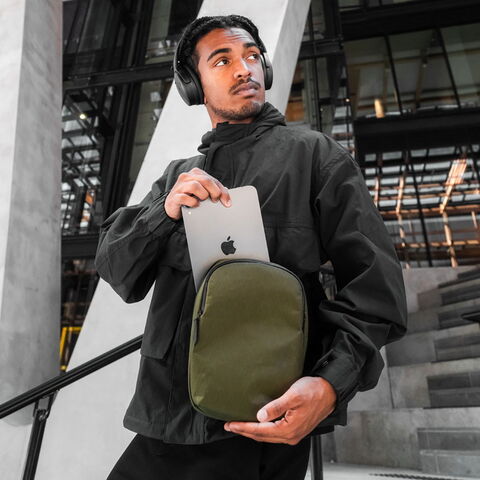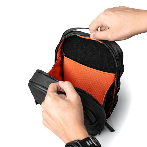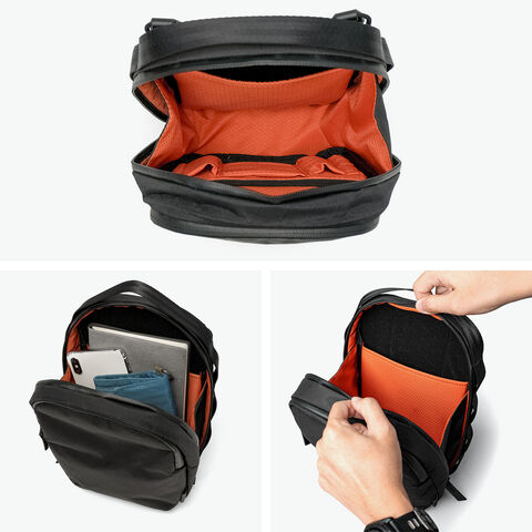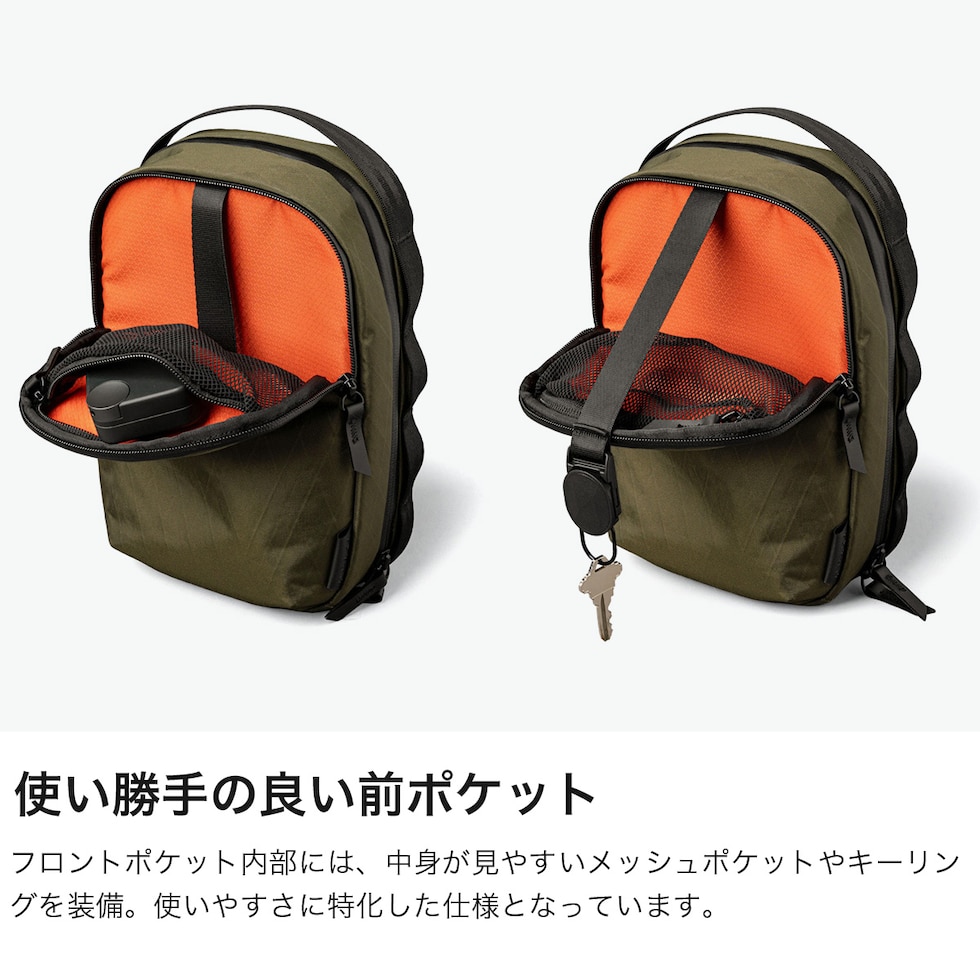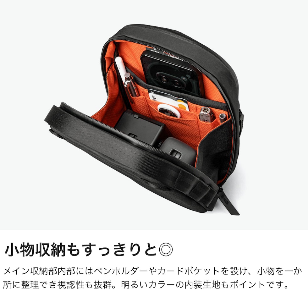 機能性スリングバッグ 普段使いから旅行など幅広いシーンで活躍する2WAYショルダーバッグ。ショルダーストラップはマグネット付きで取り外しが簡単な仕様。収納部は、必需品を収めるのにちょうどよいサイズ感です。モバイル機器の持ち運びにも安心のパッド入りのポケットや、アクアガードジッパーで安心して必需品を保護できます。 |