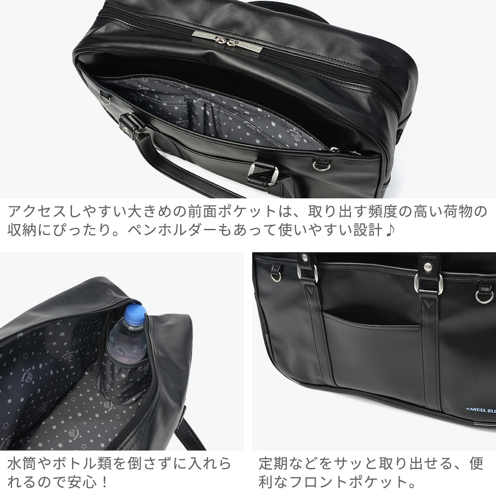 ANGEL BLUE スクールバッグ 高校生 中学生 合皮 女子高生 女子 エンジェルブルー スクバ トート サブバッグ サブバ おしゃれ かわいい 合皮スクールバッグ ブランド ポーチ付き A4 AB001