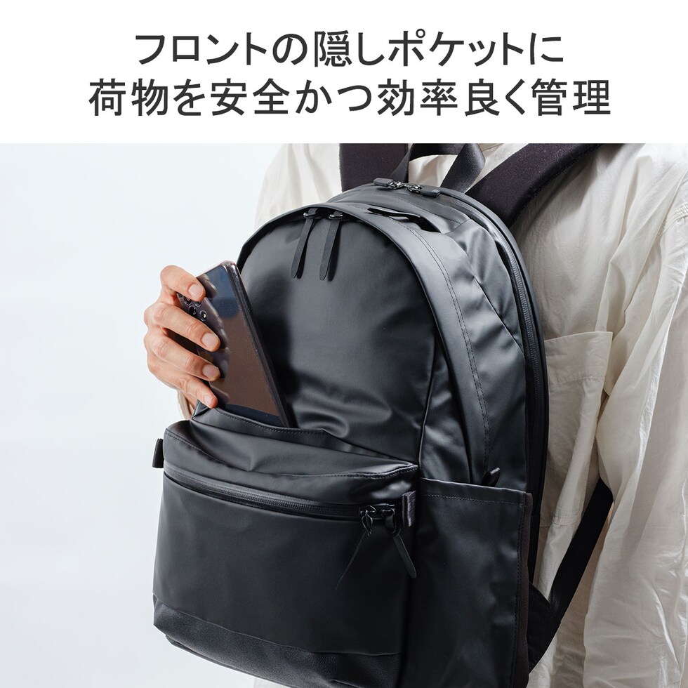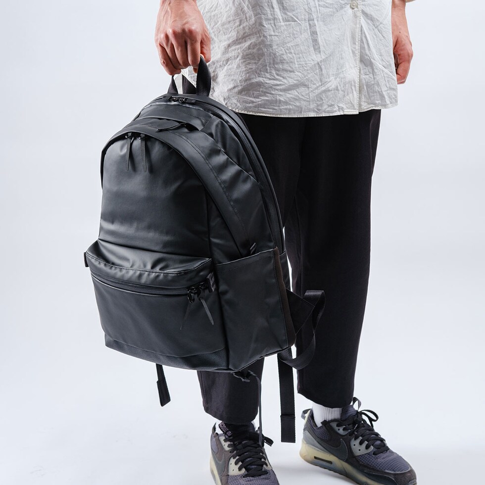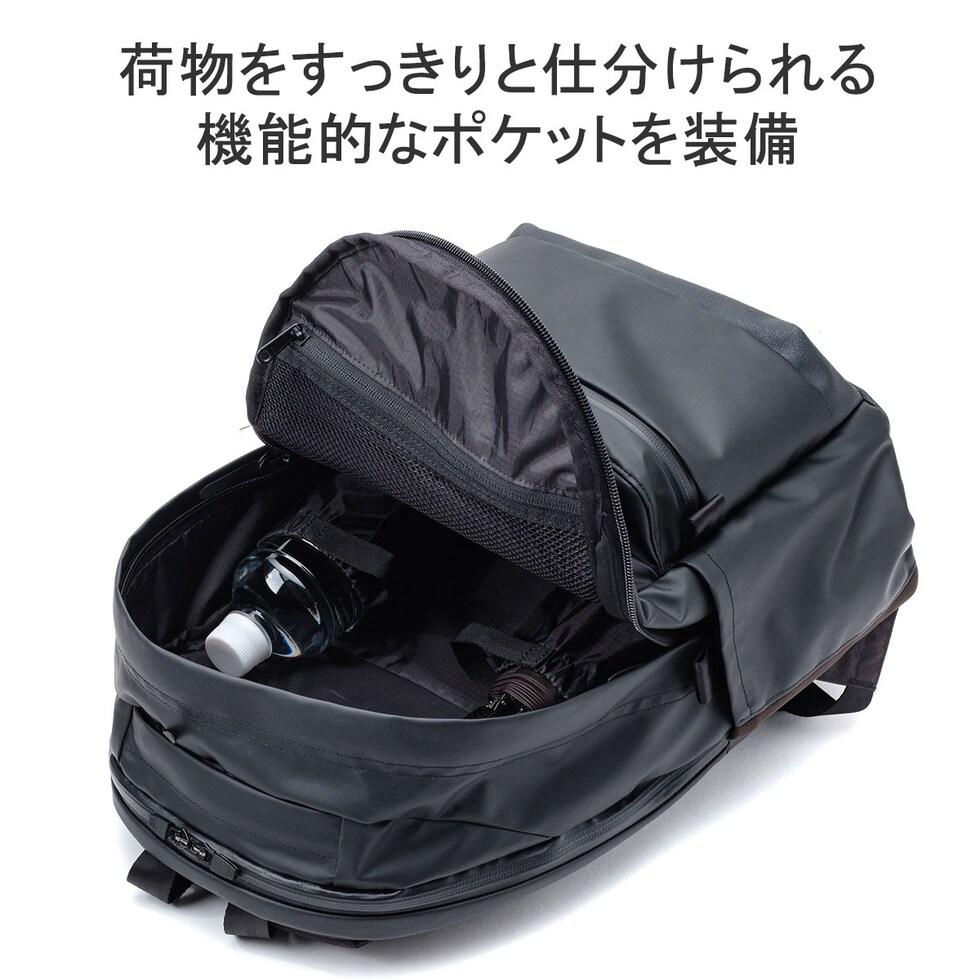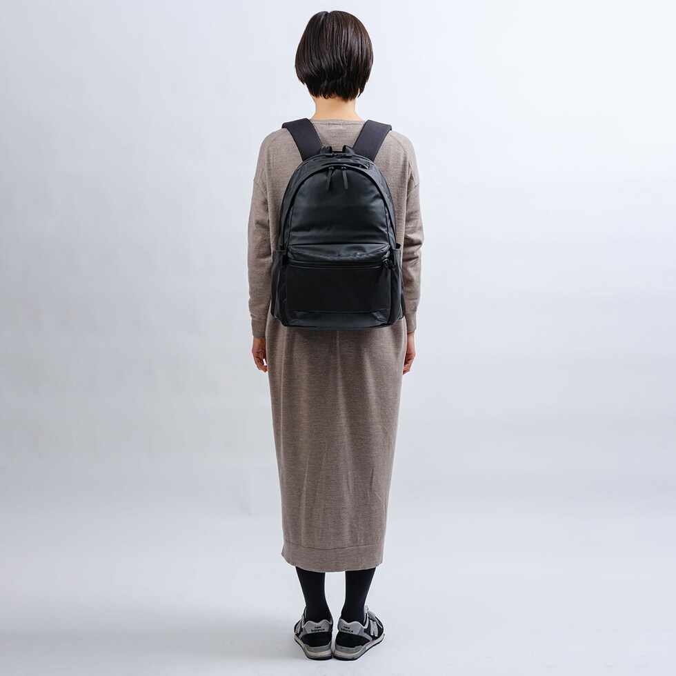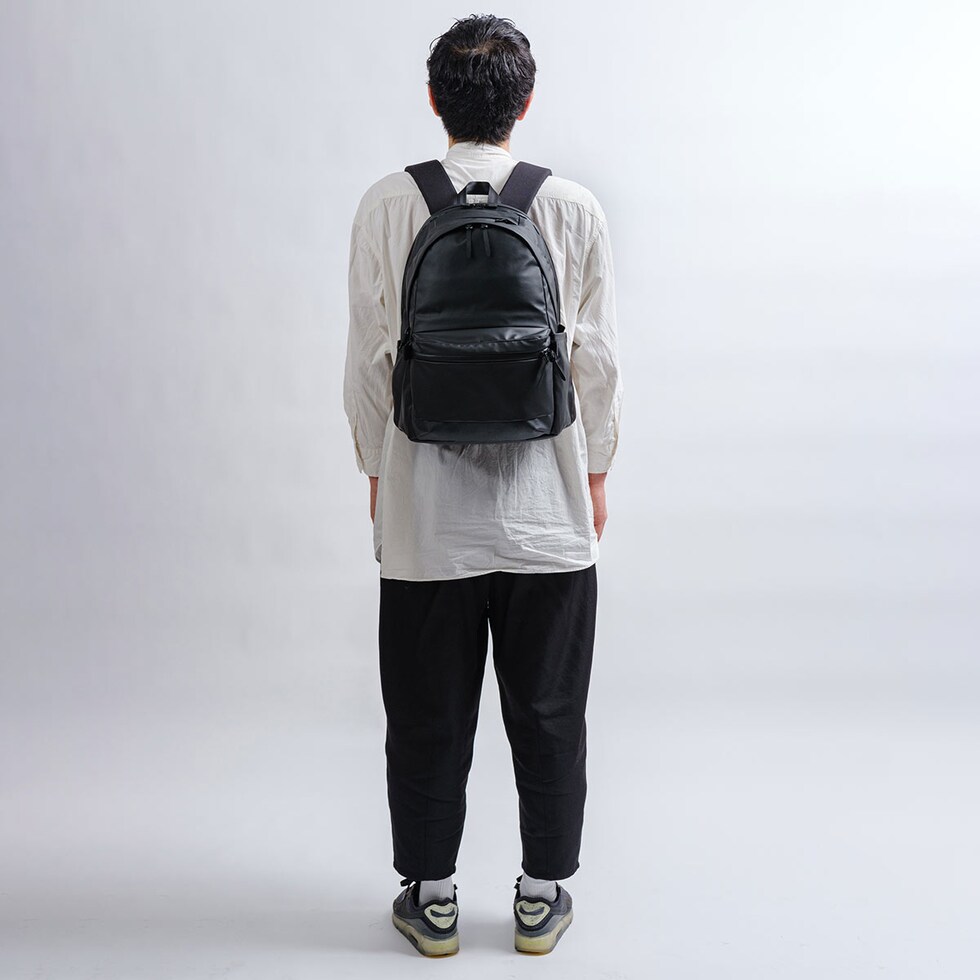 使用シーンを考え抜き 実用性に特化したリュック 休日シーンを中心に持ち歩くアイテムをリサーチしたうえで、何をどこにしまうか計算しつくされた収納配置が魅力のリュック。メイン生地は完全オリジナルで、コーデュラナイロンの強さに加え、圧倒的な耐水圧を誇るポリカーボネート加工を施した、雨や汚れに強い仕上がりとなっています。(耐水圧60000mm以上)裏地には、丈夫で引き裂きに強く、ペットボトルを100%リサイクルしたエコ素材を使用したこだわりの設計。通勤やデイリー、子育てまで!名だたるブランドのOEM・ODM(企画・生産)を手掛けた老舗バッグメーカーが捧げる、マルチに使える万能モデルです。 |