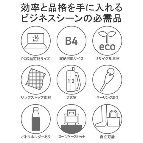 | 効率と品格を手に入れる ビジネスシーンの必需品 ビジネスマンが持ち歩くアイテムをリサーチし、何をどこにしまうか計算しつくされた収納配置が魅力の2層式リュック。利便性を高める細やかな気遣いがそこかしこに施されており、ビジネスシーンで役立つ機能が満載の仕上がりに。名だたるブランドの企画・生産を手掛けた老舗バッグメーカーが考え抜いた至高の一品です。 |
