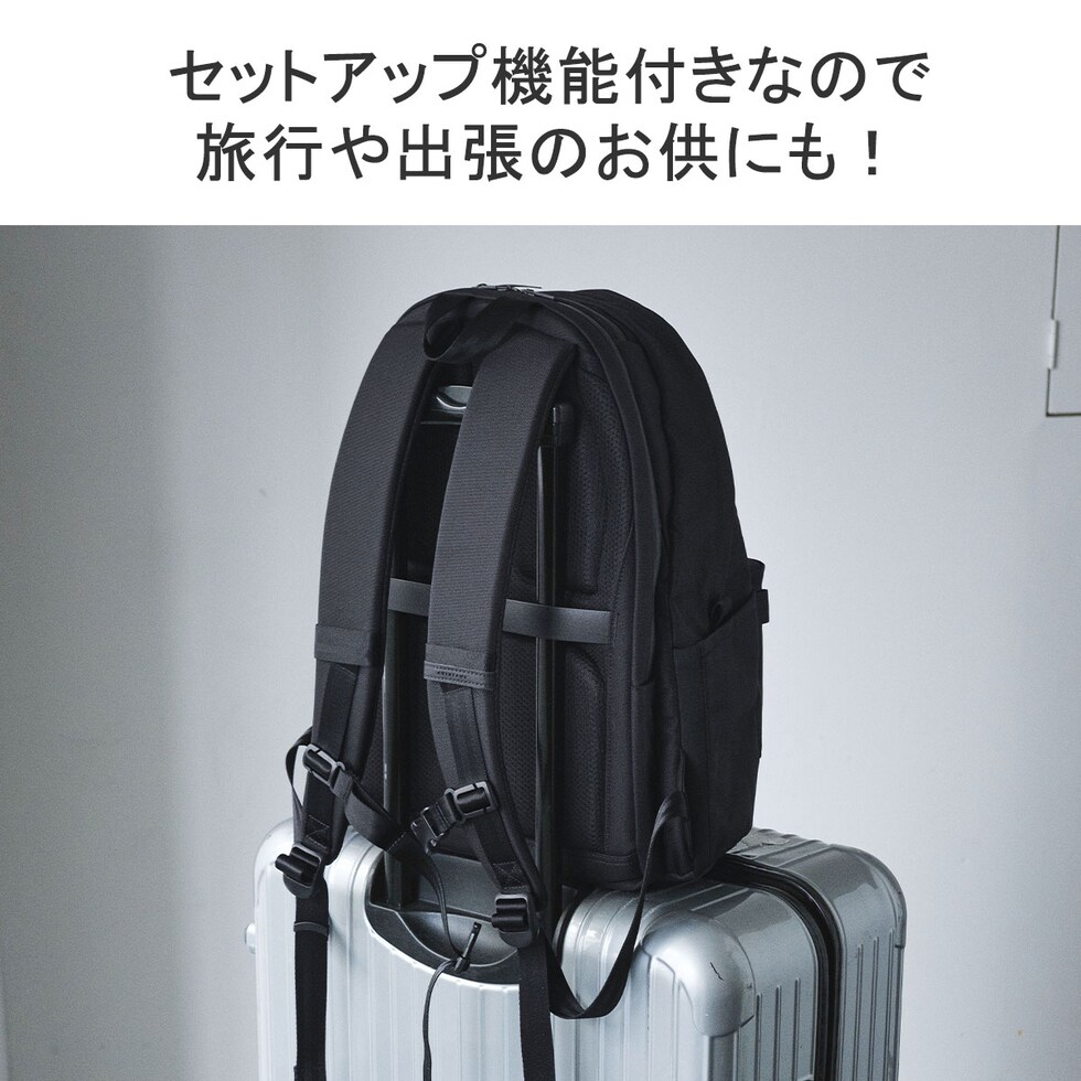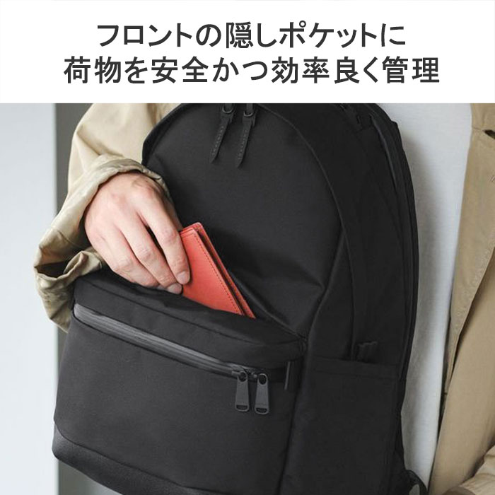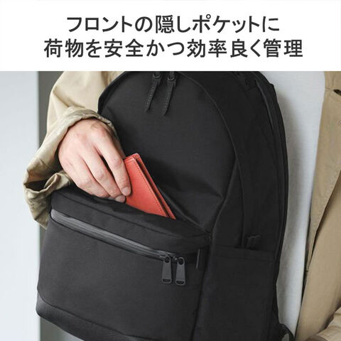 | 効率的な収納配置で 使いやすさを実感 休日シーンを中心に持ち歩くアイテムをリサーチしたうえで、何をどこにしまうか計算しつくされた収納配置が魅力のリュック。考え抜かれた利便性で、休日のお出掛けをより快適にしてくれます。名だたるブランド企画・生産を手掛けた老舗バッグメーカーが捧げる、外出のお供に最適なハイスペックモデルです。 |