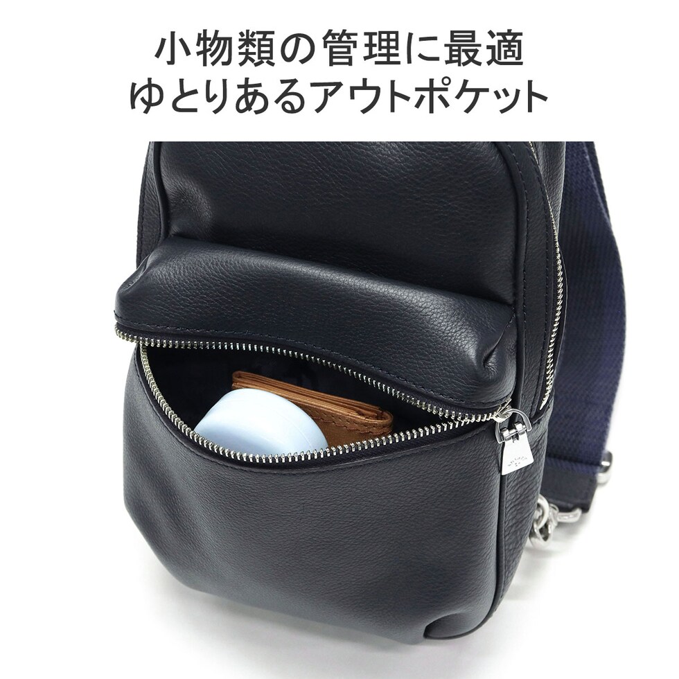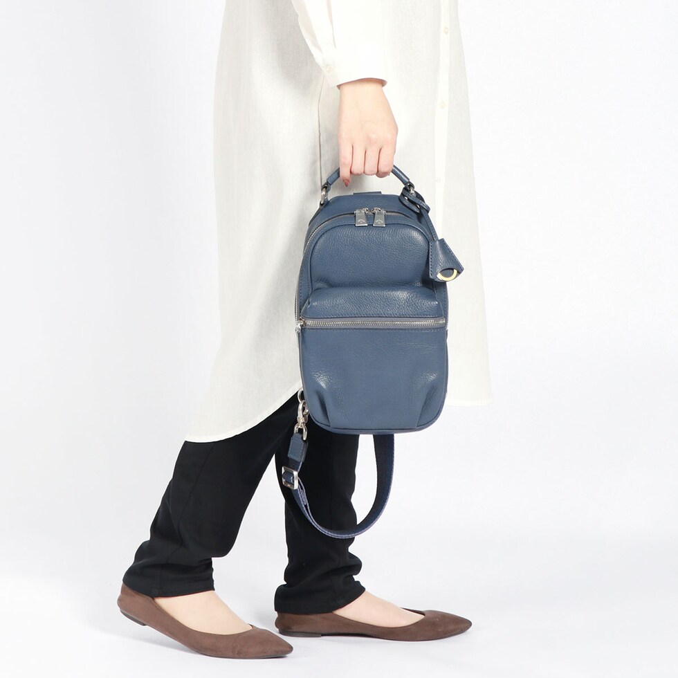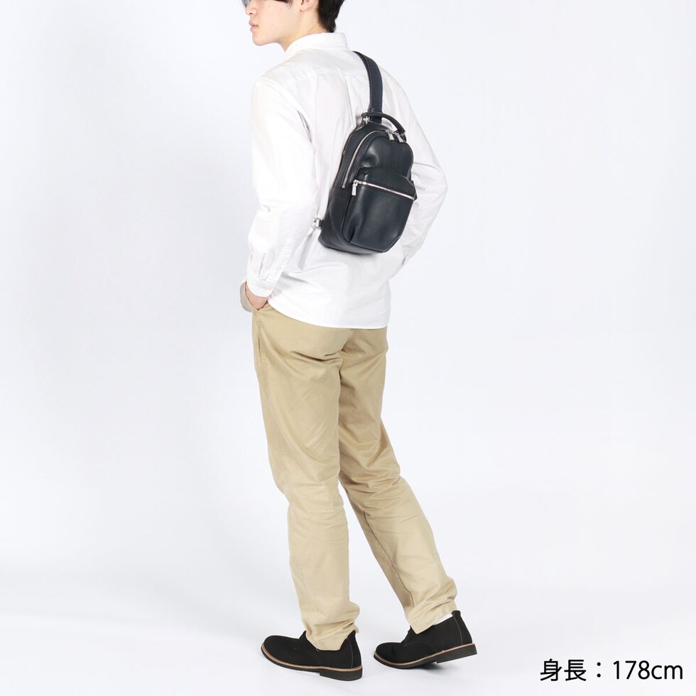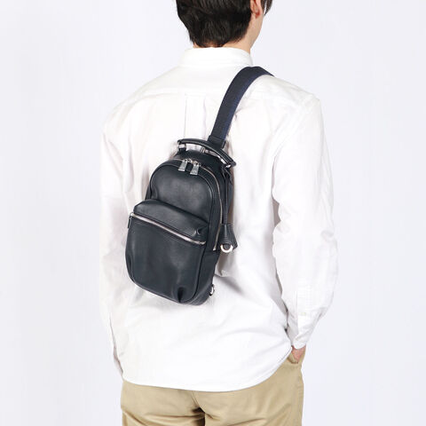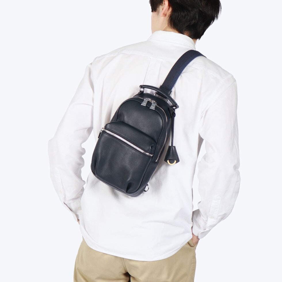 | スマートに持ち歩く 日常のパートナー エレガントで豊かな表情が楽しめる『Shrink Leather』をふんだんに使用した2WAYボディバッグ。ラグビーボールほどのサイズ感で、丸みを帯びたデザインが魅力です。特徴的なファスナー式のアウトポケットは、背負った際もスマートなフォルムを保つよう設計されており、使い勝手にも優れています。 |