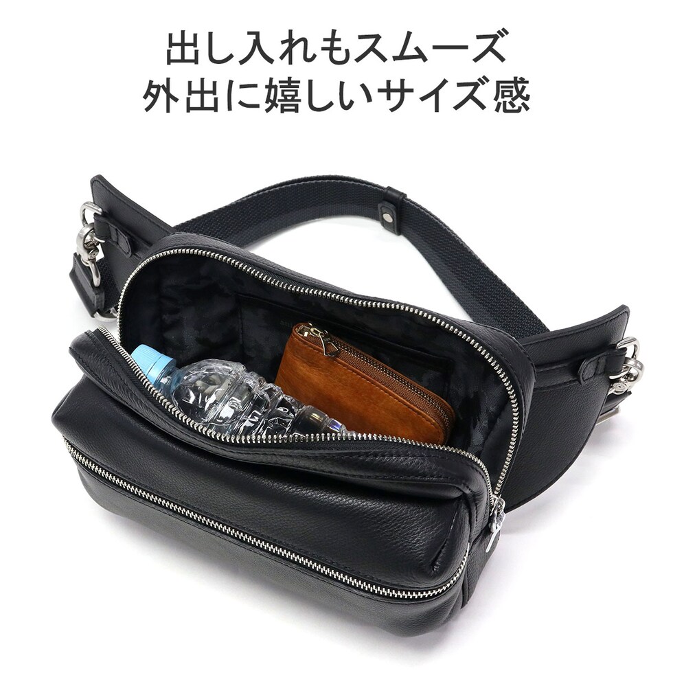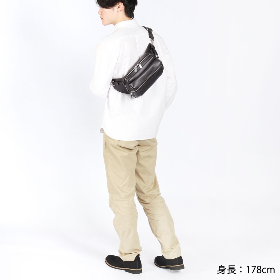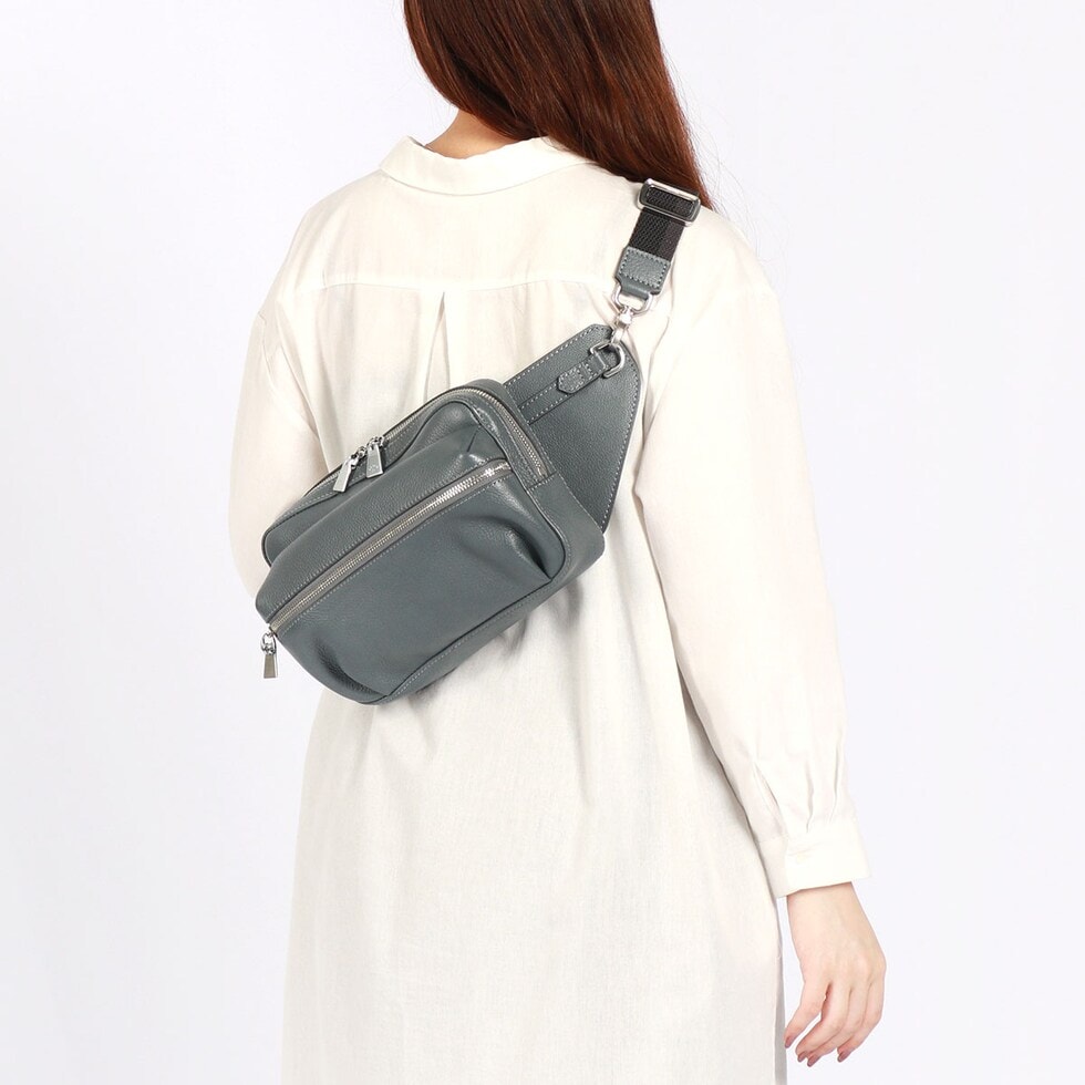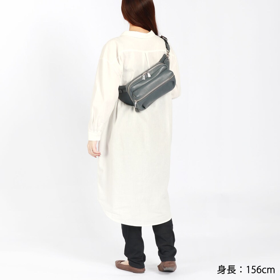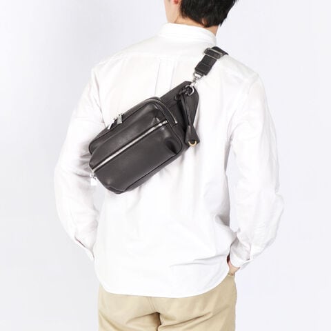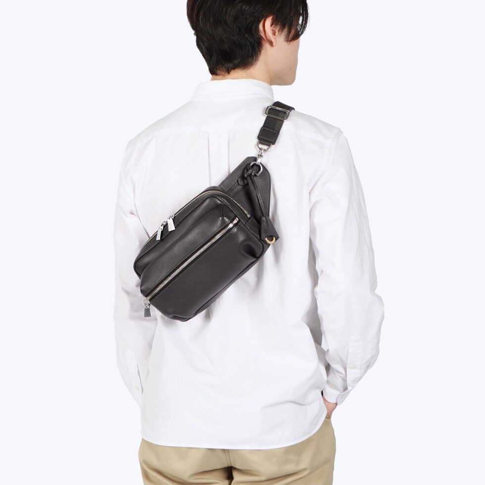 | スマートなフォルムで 身につける安心感 エレガントで豊かな表情が楽しめる『Shrink Leather』をふんだんに使用したボディバッグ。柔らかなレザーと内側の1枚革が身体にフィットし、安定感抜群。丸みを帯びたフォルムとポケット底のタックにより、お腹側に回して持ってもスタイリッシュに見える設計が魅力です。 |