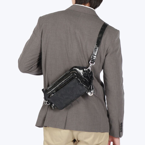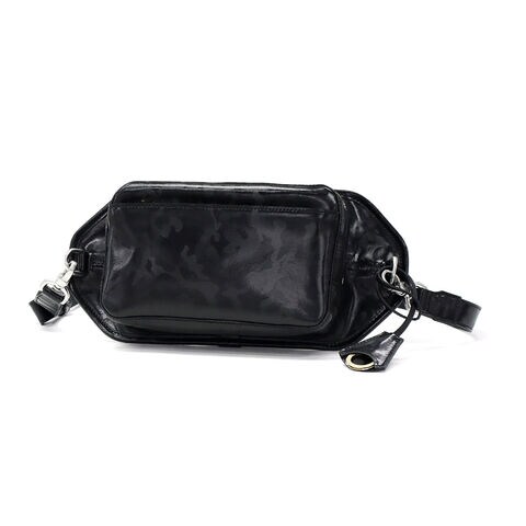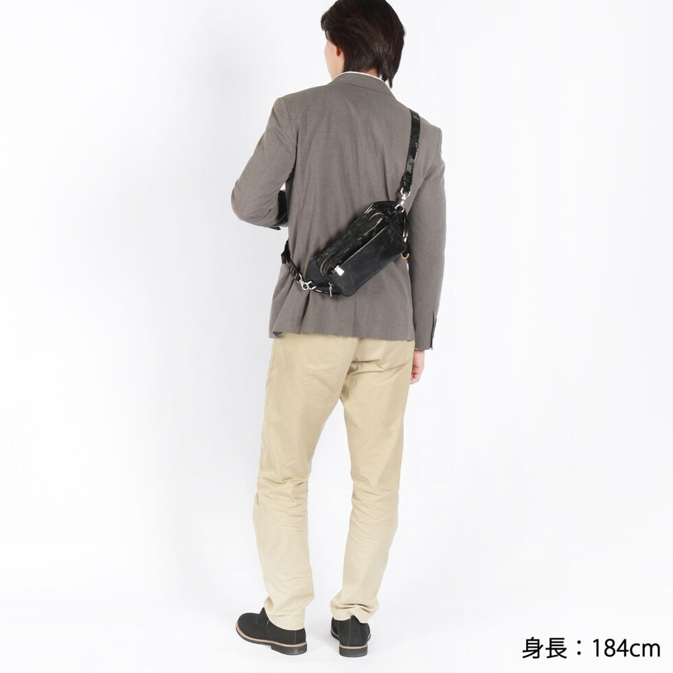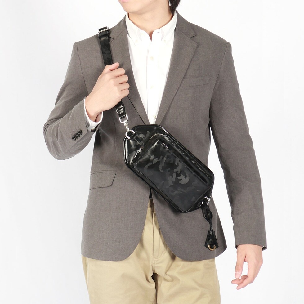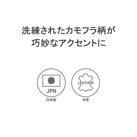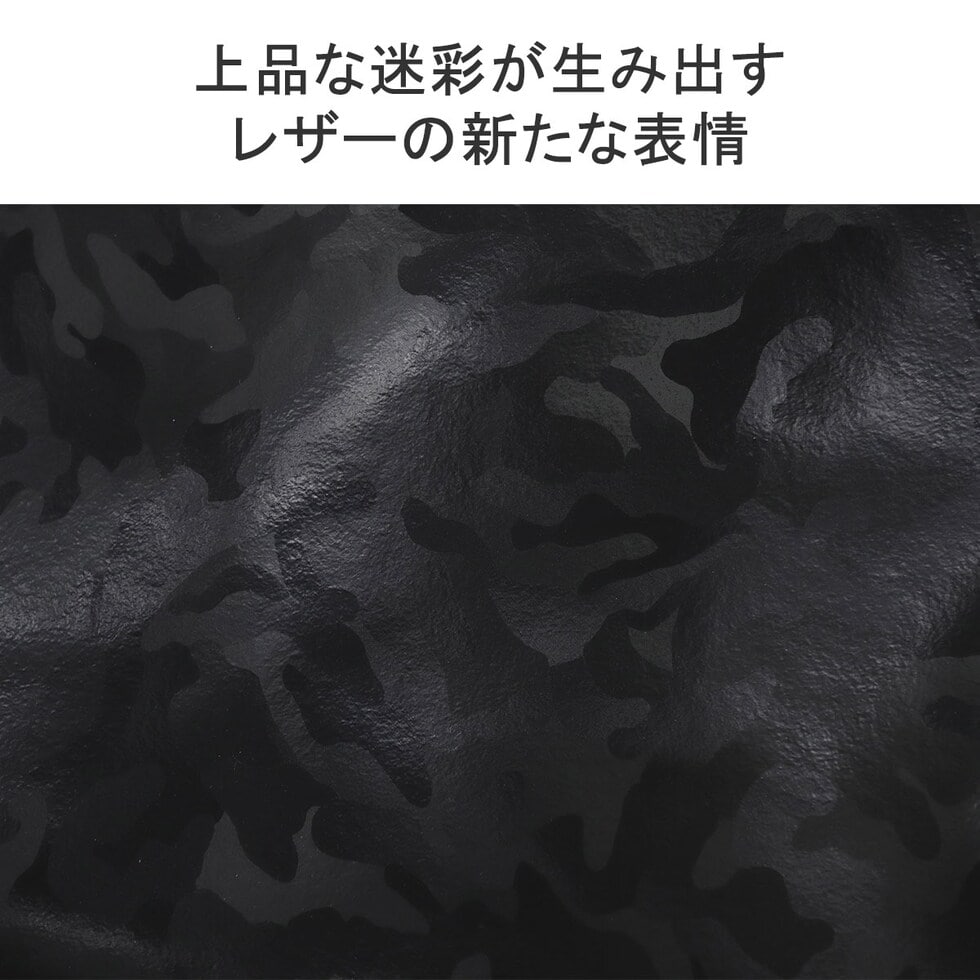 | 洗練されたカモフラ柄が 巧妙なアクセントに ヌバック状のレザーに迷彩柄の特殊なフィルム加工を施した「シー-フィルム レザー」のボディバッグ。剥離性・耐水性・耐熱性・耐擦傷性に加え、ソフトな革の下地を採用することでしなやかさと強さが一段と向上しています。“上品な迷彩”が残るようアレンジされた技術とカモフラージュパターンの光沢感ある表情をお楽しみください。 |