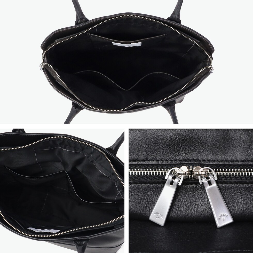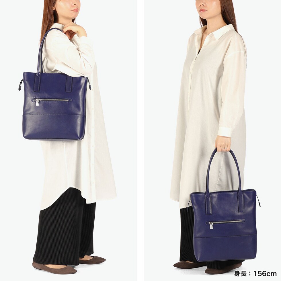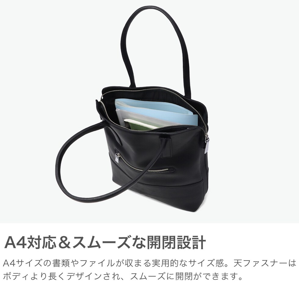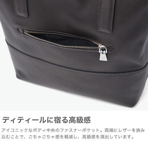 すっきりスマートに 見た目はシンプルに仕上げていますが、使い勝手をとことん考えアイデアを細部に入れることで、使用感もデザイン性も極めたトートバッグ。上部はしなやかで下部はどっしりとしている構造を作り上げることで、自立できるよう仕上げました。落ち着いた品のある雰囲気で、普段使いからビジネスまで、幅広いシーンで活躍するアイテムです。 |