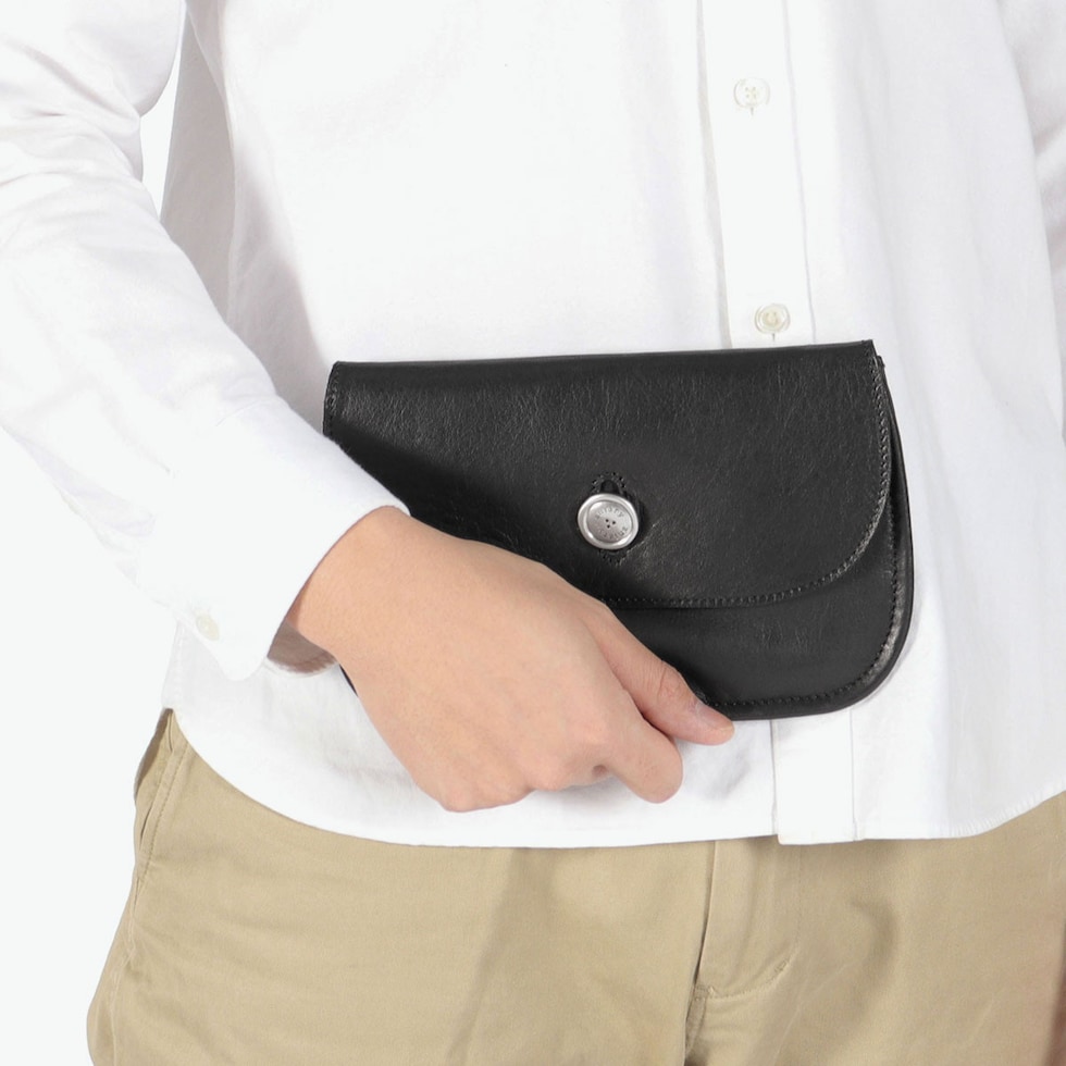“世界一柔らかい革”を目指して作られた素材「Reality Leather」を使用した、フラップ型ポーチ。通帳やパスポートなど、他の荷物と分けて保管したい大切なアイテムの収納に最適です。内側には仕分けに便利なポケット、外側にはファスナーポケットを備え、整理しやすい設計。バッグの中ではもちろん、リビングに置いても自然に馴染む落ち着いたデザインも魅力です。