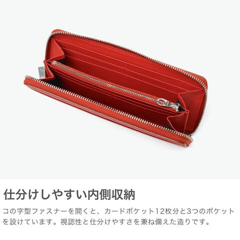 洗練デザインの長財布 手間隙を十二分にかけて、理想を追求して仕上げた「Artisan Leather」を使用した二つ折り財布です。ラウンドファスナーで大きく開き、中身が一目で確認できます。使いやすさを考え外側に設けられたアウトポケットが特徴。ファスナー式の大きな小銭入れや12枚分のカードポケット、ササマチ付きの札入れなど高い収納力を完備しています。シーンやスタイルを問わず使いやすいデザインも魅力です。 |