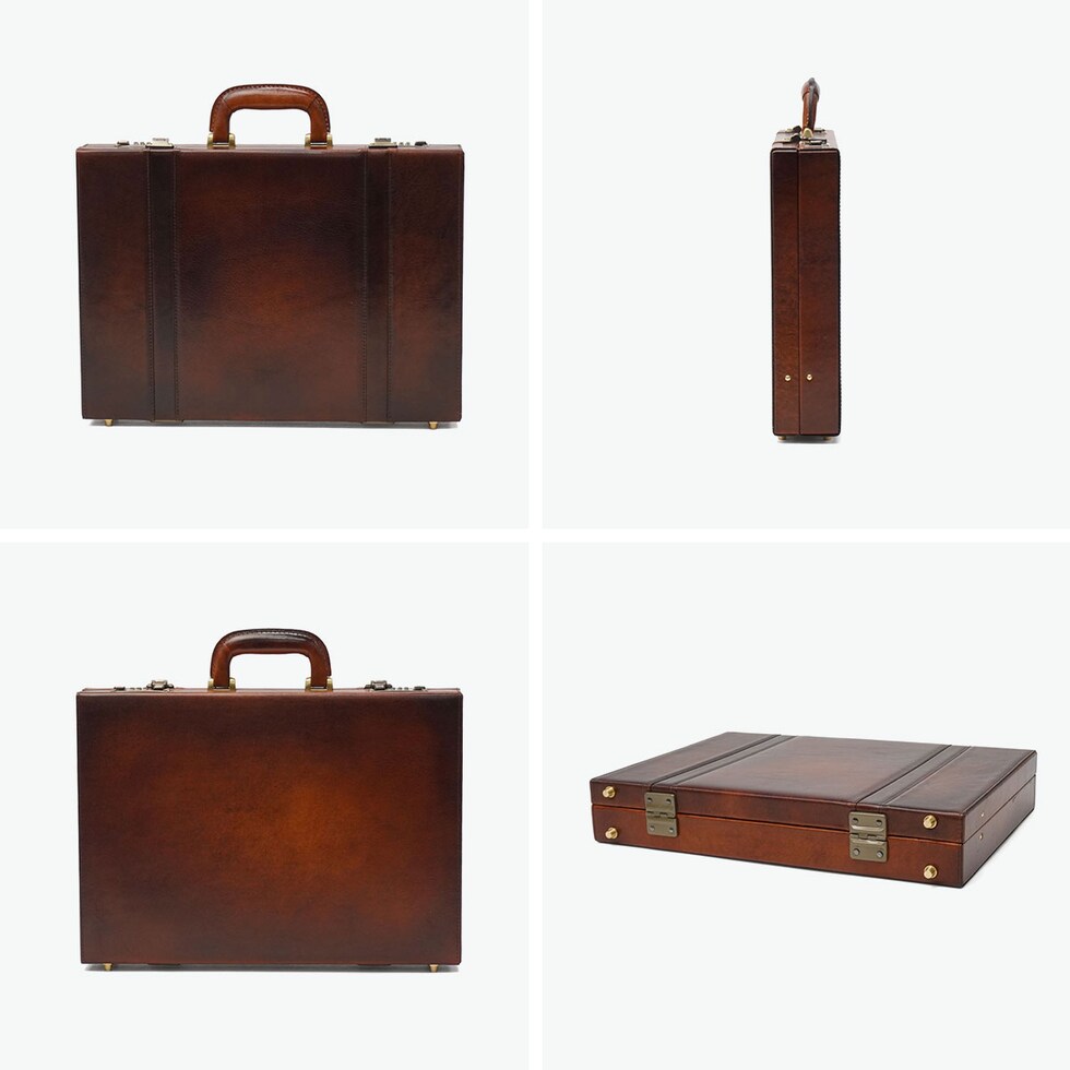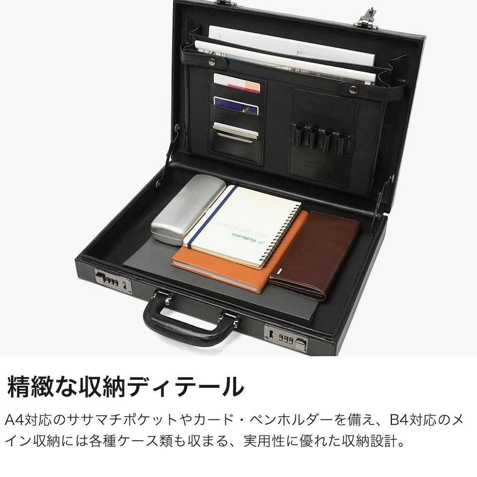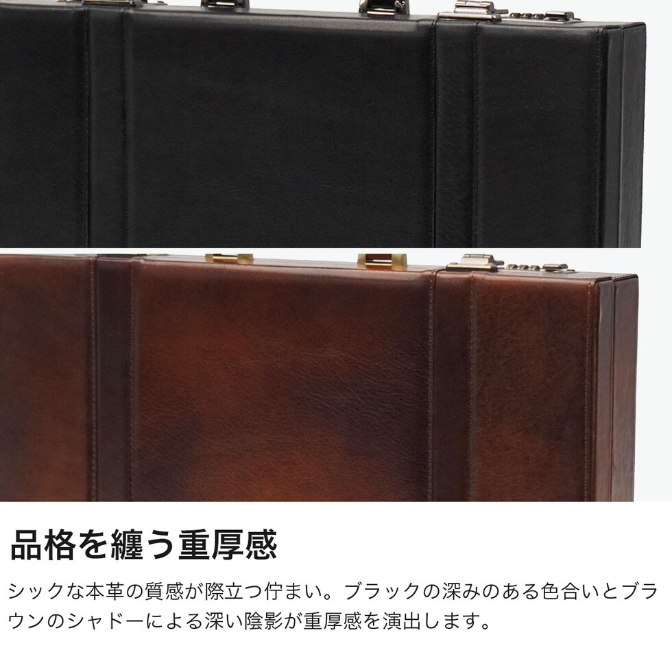 革が持つ表情の豊かさをじっくりと実感できる面白さを秘めた『Lugard G-3/ラガードG-3』シリーズのアタッシュケース。職人による高い技術力とこだわりを感じさせる上質なレザーは、使うほどに味わいが増していきます。ビジネスの重要なシーンに登場するにふさわしい、 そのたたずまいや機能性で、時には商談を有意義なものに変える力を持っています。3ダイヤル式の施錠ができる安全性と重厚感あふれるルックスで、 持主の信頼感や格調をさらにアップしてくれます。