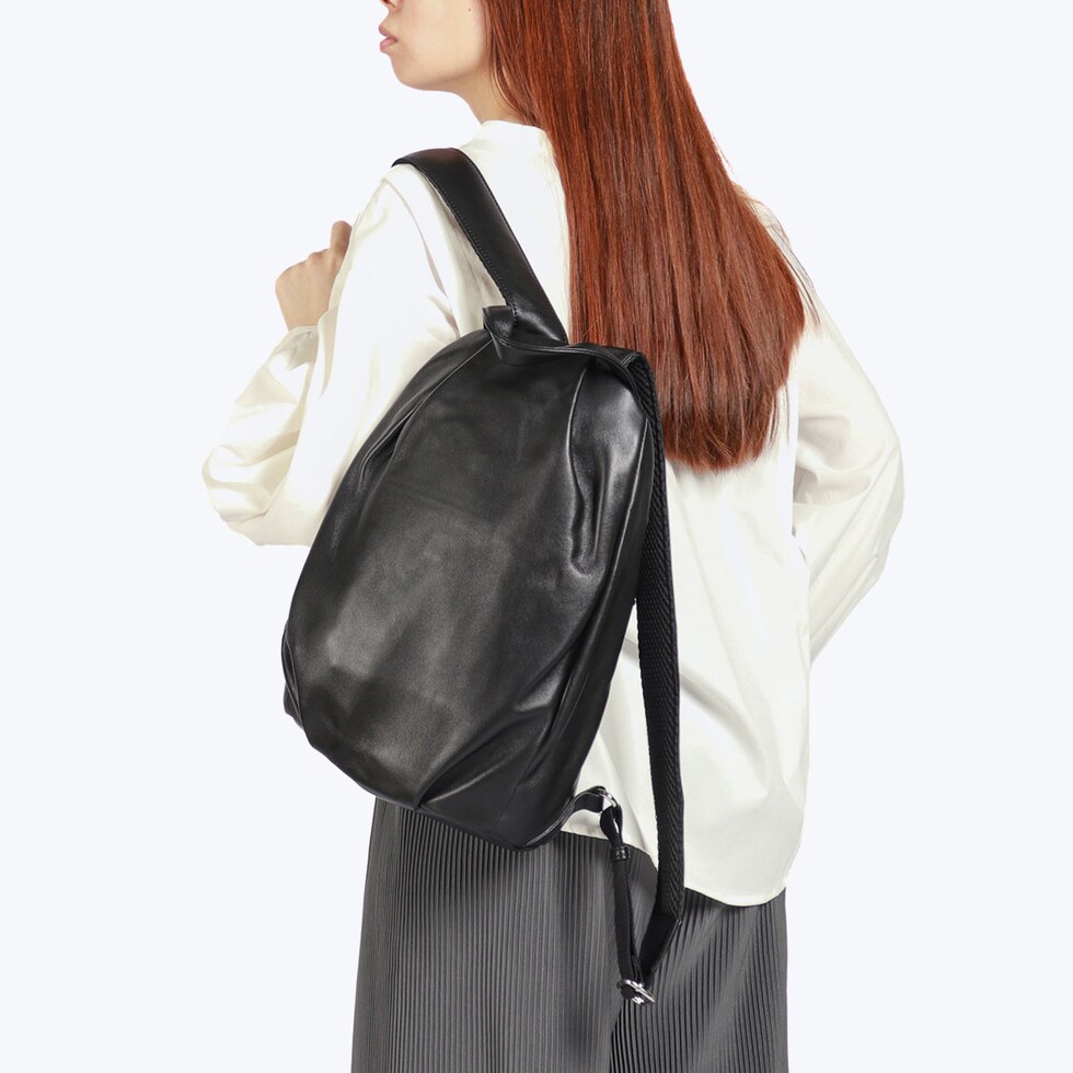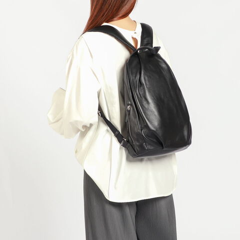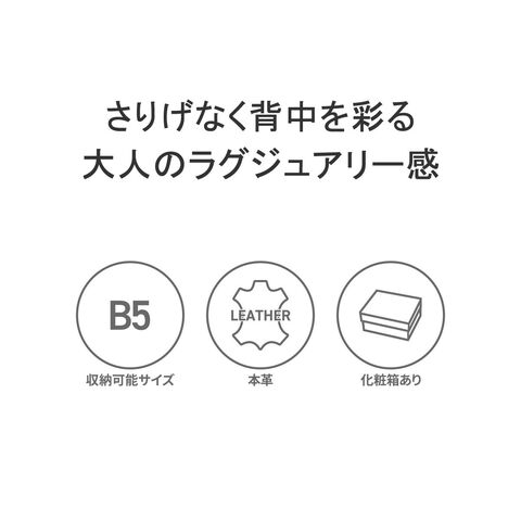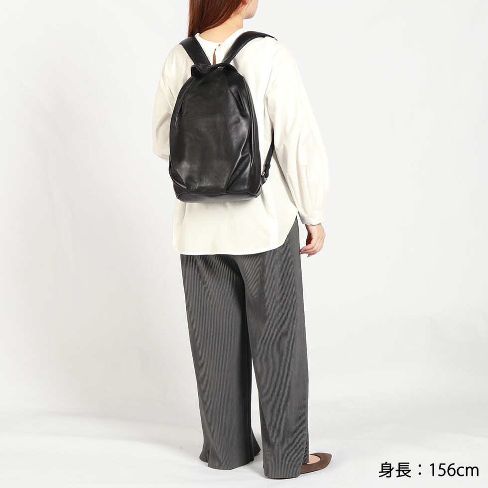 | さりげなく背中を彩る 大人のラグジュアリー感 タッチ感の良いラム革を使って大胆にドレープを施したシリーズ『ラムーア』のリュックです。B5サイズの収納に最適な大きさで、必要なものをしっかりと持ち運べるのに、すっきりとしたフォルムを実現。洗練されたデザインがどんなコーディネートにもぴったりマッチし、大人の女性にふさわしい上品な印象を与えます。 |