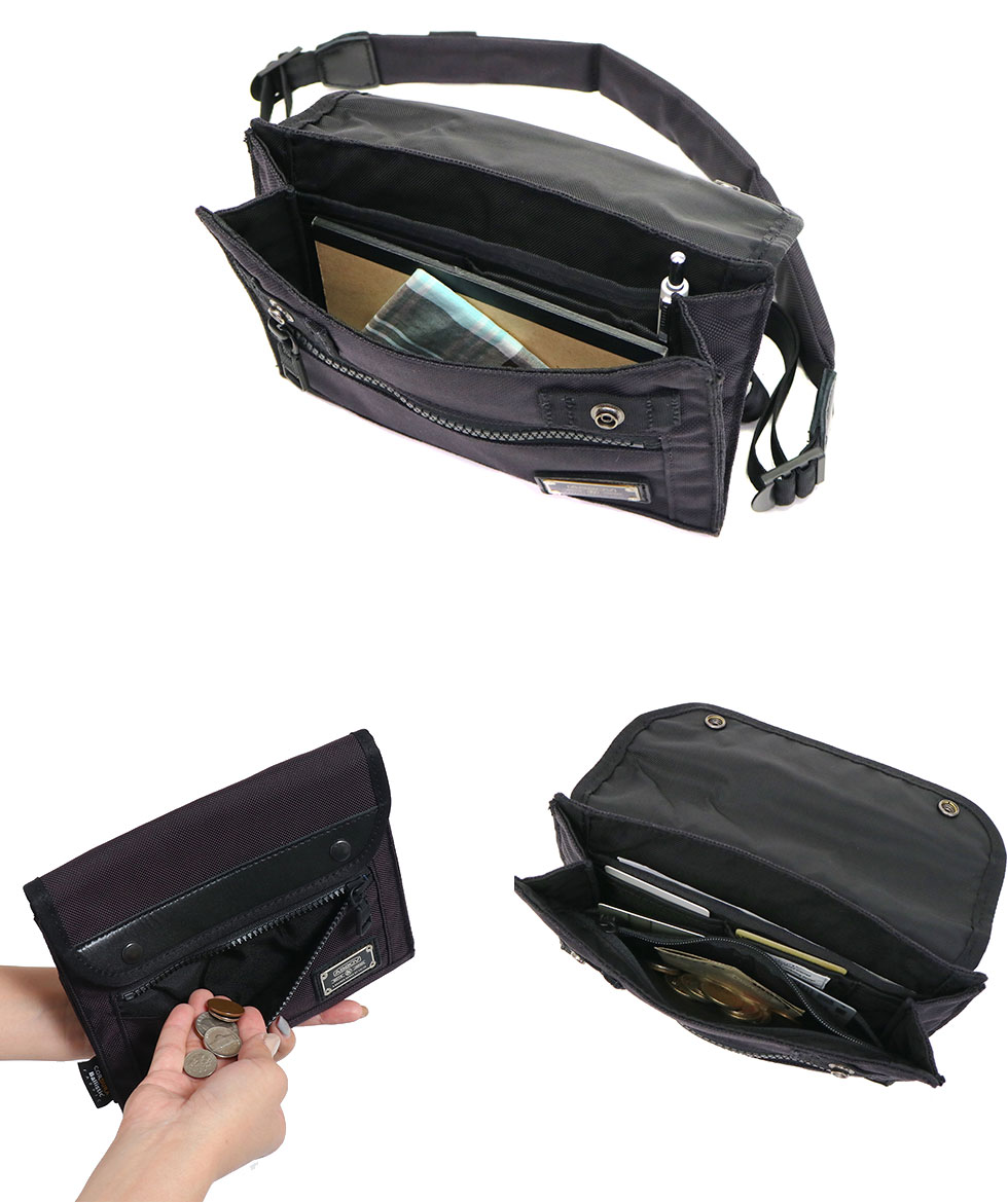 オリジナルのコーデュラバリスティックナイロンを使用し、摩擦・引き裂き・すり切れ等に対する強度を備えたお財布ショルダー。軽量でコンパクトなので、ちょっとしたお出かけや、フェス、旅行など、様々なシーンで活躍してくれます。